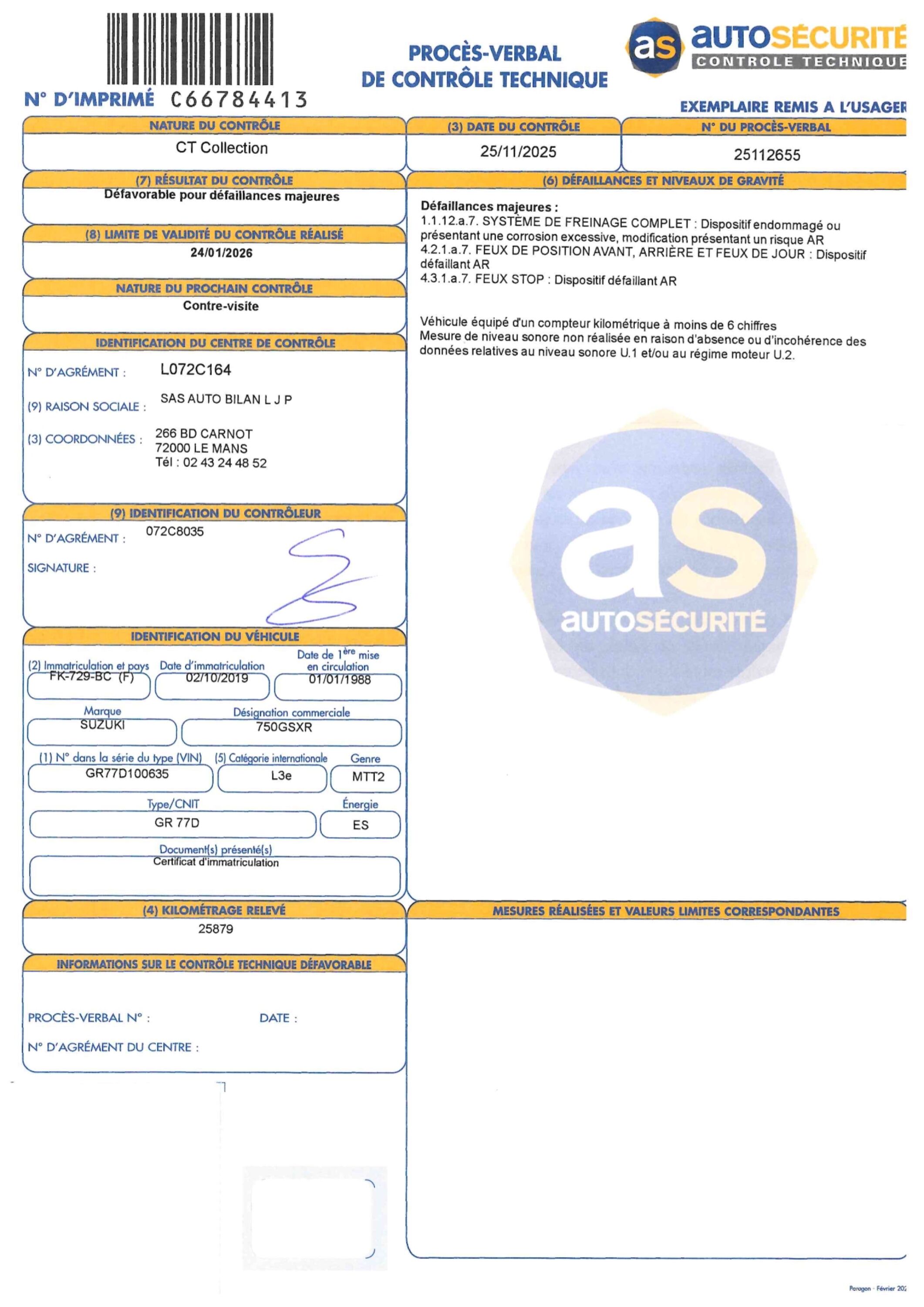 GSXR 750 - 1988, ROUGE, 7 cv, mise en circulation le 01/01/1988.