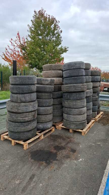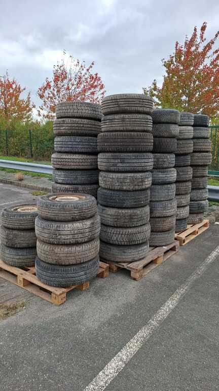 PNEUS : Lot de 86 pneus avec jantes UTILITAIRE d'occasion HS. Vendus en l'état. Dimensions, modèles divers... tous états... |