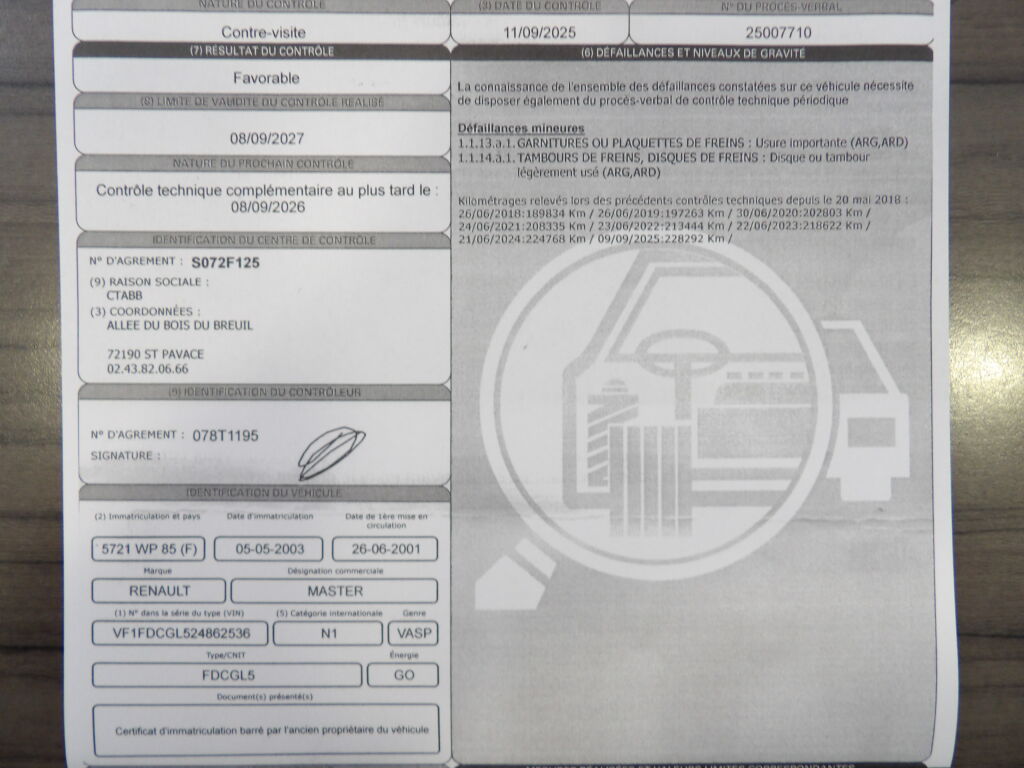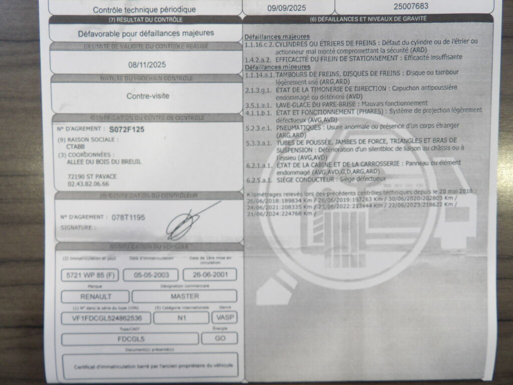 MASTER 2.2 DCI 90CV T35 L3H2, BLANC, 7 cv, mise en circulation le 26/06/2001.
