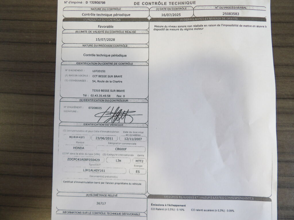 CB600F, JAUNE, 6 cv, mise en circulation le 12/11/2007.