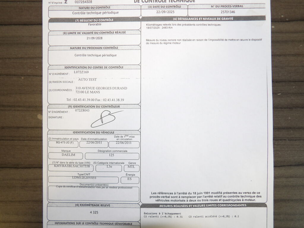 125 DAY STAR CLASSIC, BORDEAUX, 1 cv, mise en circulation le 22/06/2011.