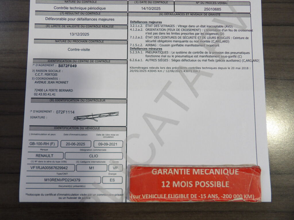 CLIO V TCE 90CV ZEN, BLANC, 5 cv, mise en circulation le 09/09/2021.