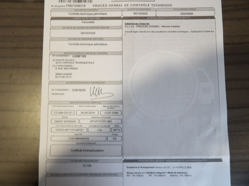 883 CUSTOM, NOIR, 9 cv, mise en circulation le 13/07/2000.