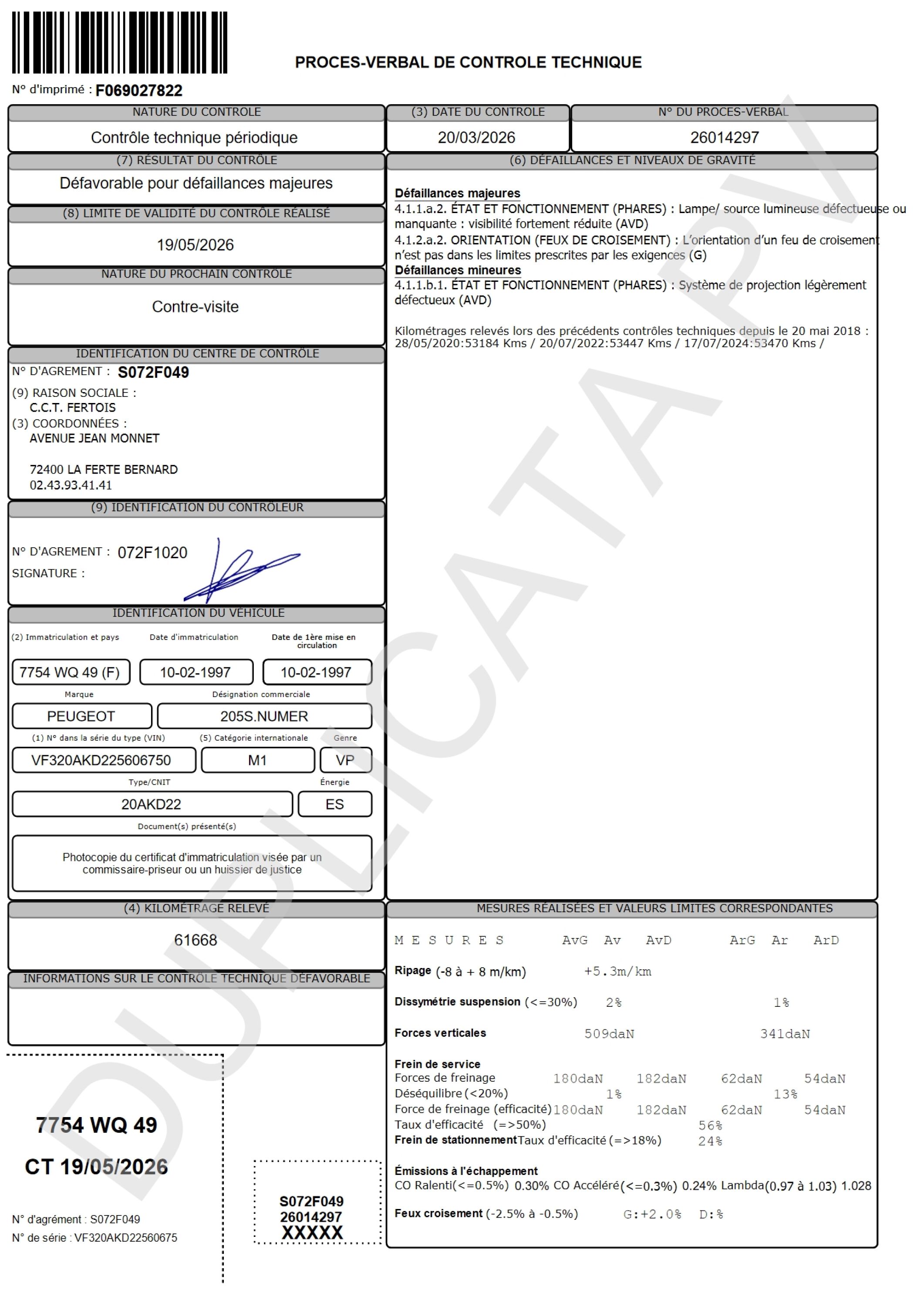 - Carnet d'entretien original, historique des contrôles techniques et double de clé