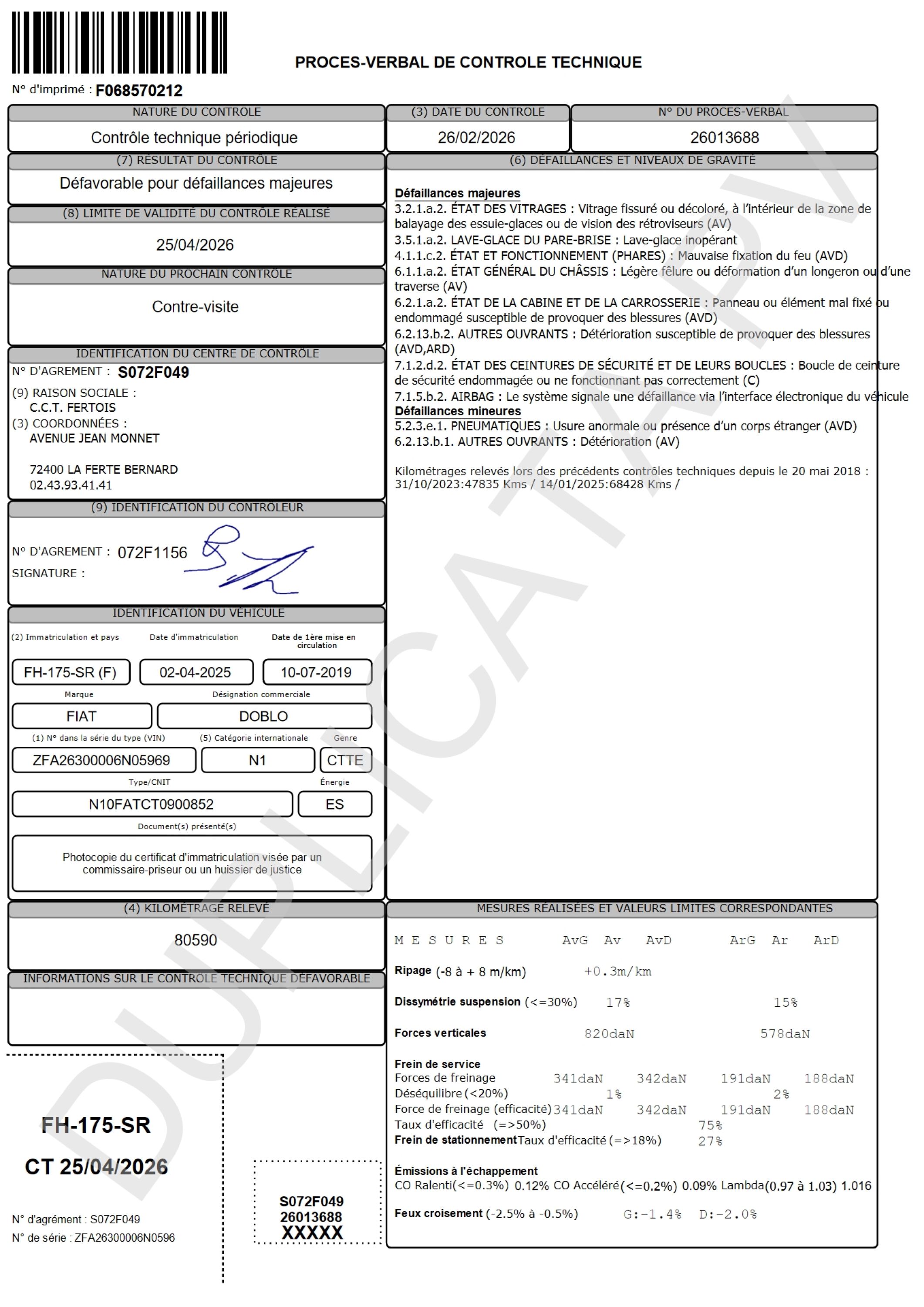 Observations : - MESSAGE FAIRE CONTROLER AIR BAG AFFICHE.