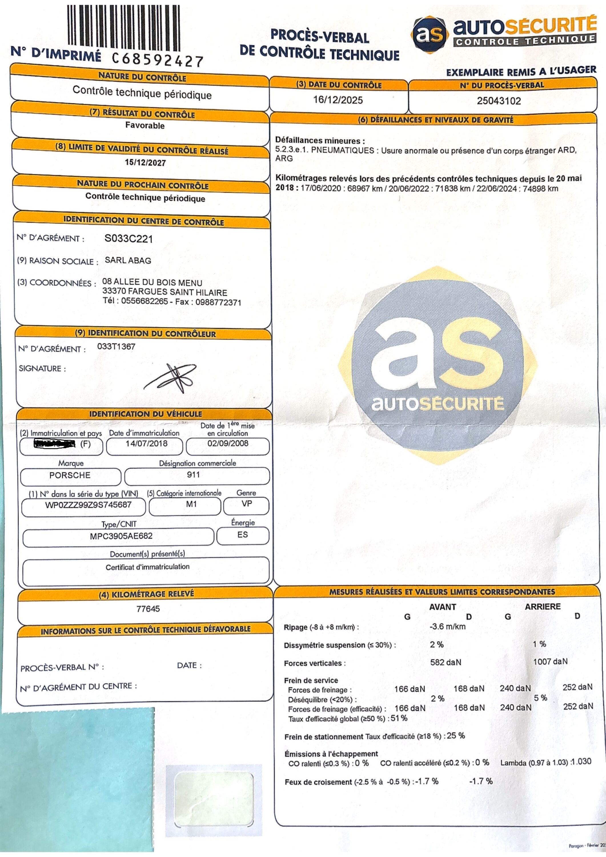 911 CARRERA S BOITE AUTO, GRIS, 28 cv, mise en circulation le 02/09/2008.