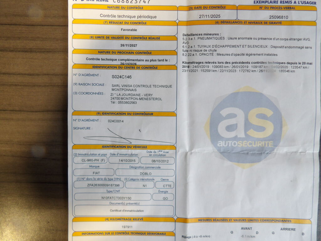 DOBLO CARGO 1.3 MJT 90CV PACK PROFESSIONNAL, BLANC, 4 cv, mise en circulation le 08/10/2012.
