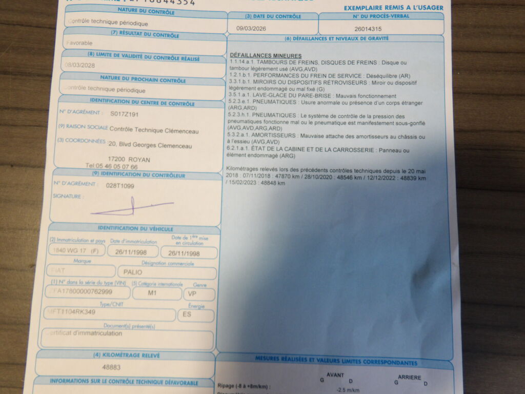 PALIO WEEKEND 73CV, VERT, 5 cv, mise en circulation le 26/11/1998.