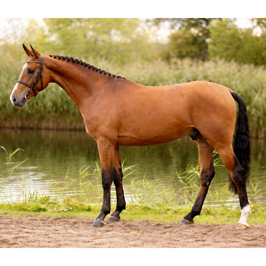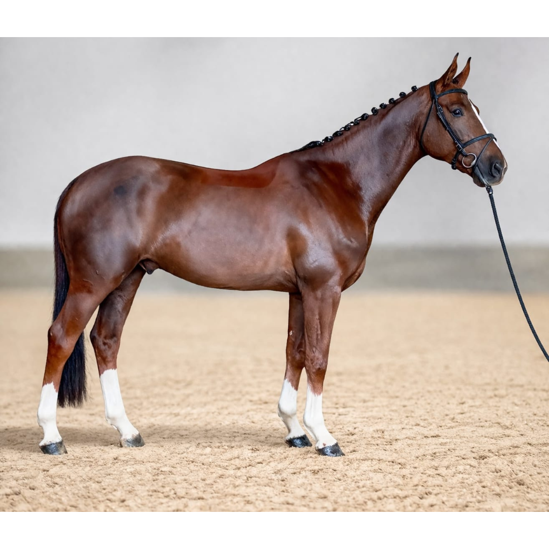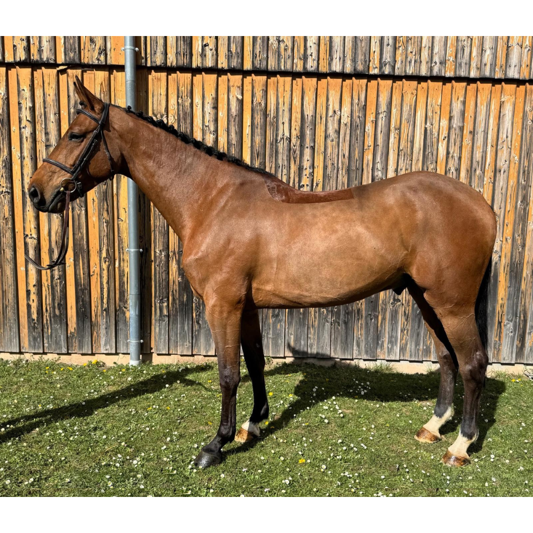 SORAYA B has produced Quant Jolly Jumper Z (Quaprice Bois Margot), aged 4 (sold), and is expecting her second foal (due on 31 March 2026 by Lagonda Jolly Jumper, a nephew of Cayman Jolly Jumper).