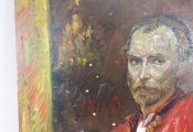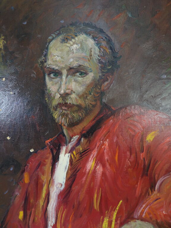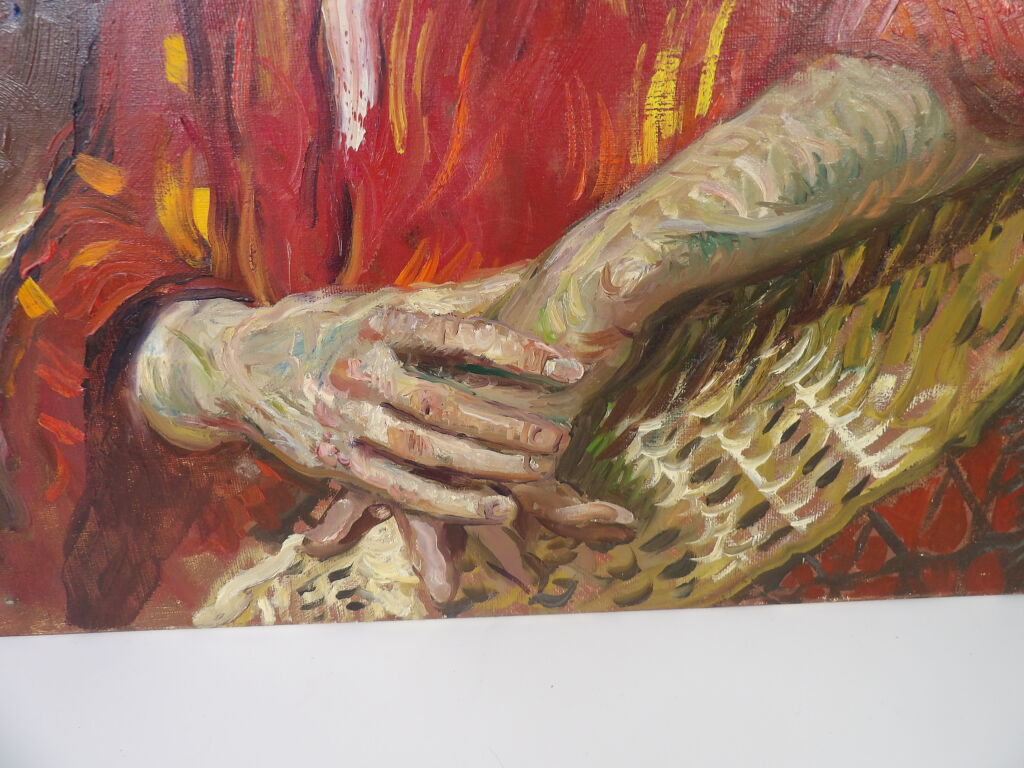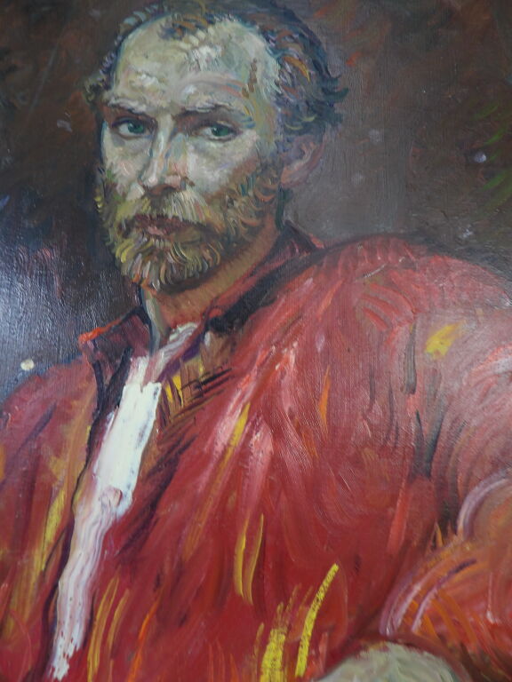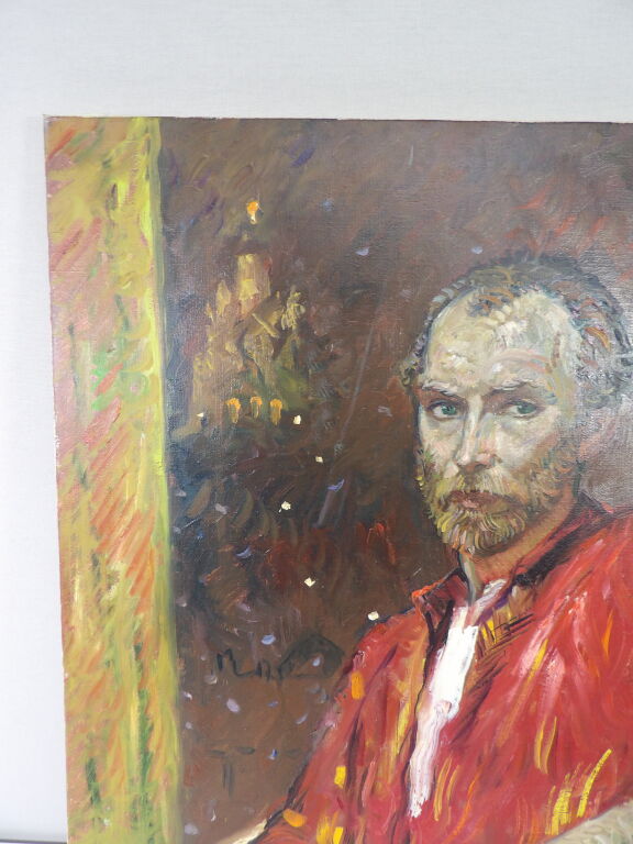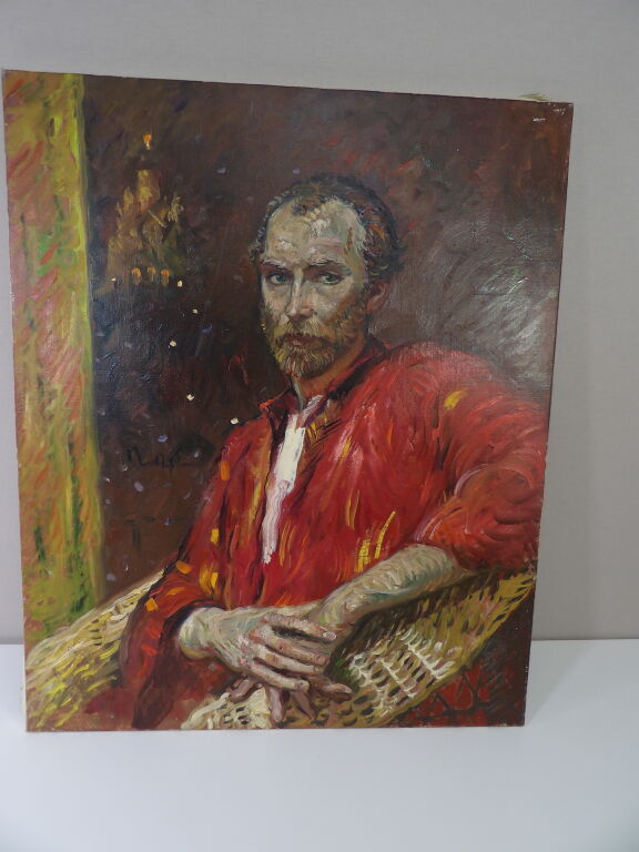 Attribué à Rimat Animaev : huile sur toile portrait d'homme assis 60x73 cm