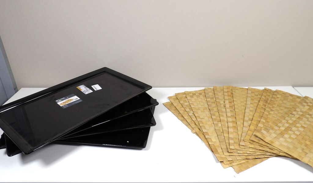 CUISINE - TRAITEUR - Lot de 4 Grands plateaux en mélaminé noir + set de présentation tressés
