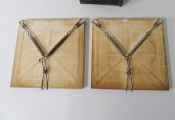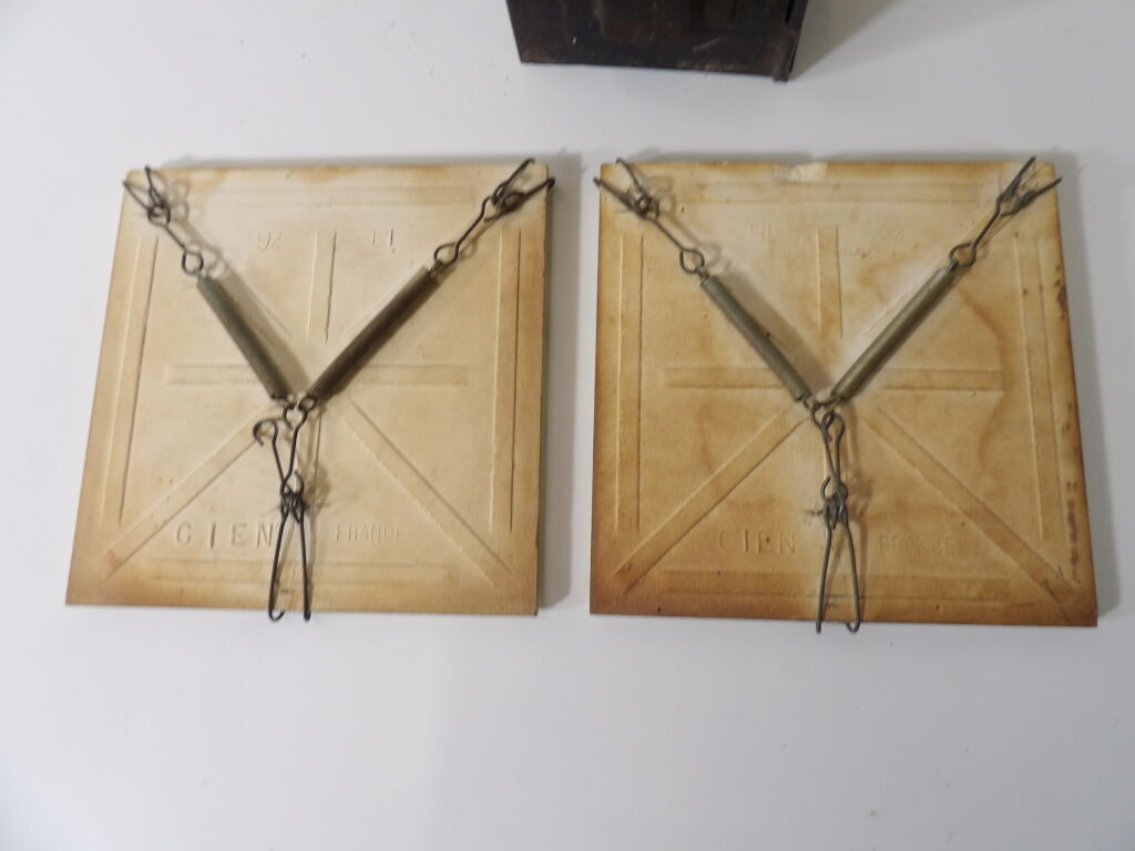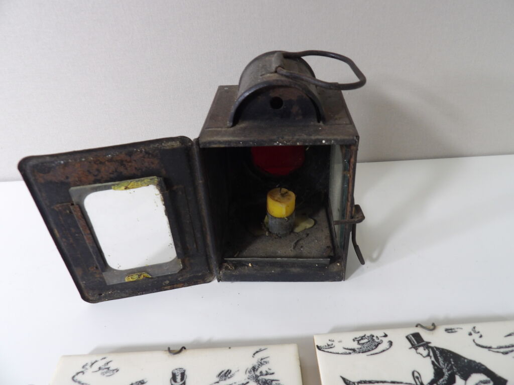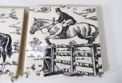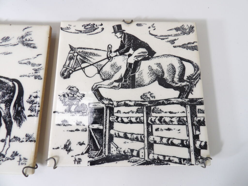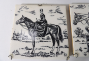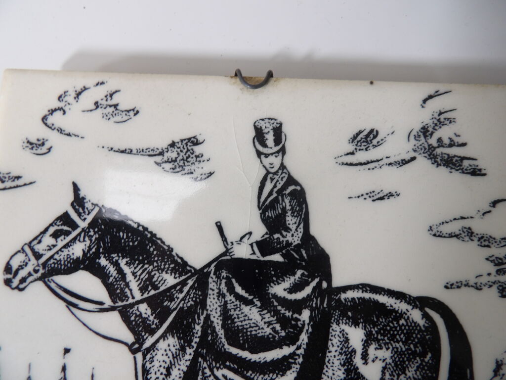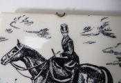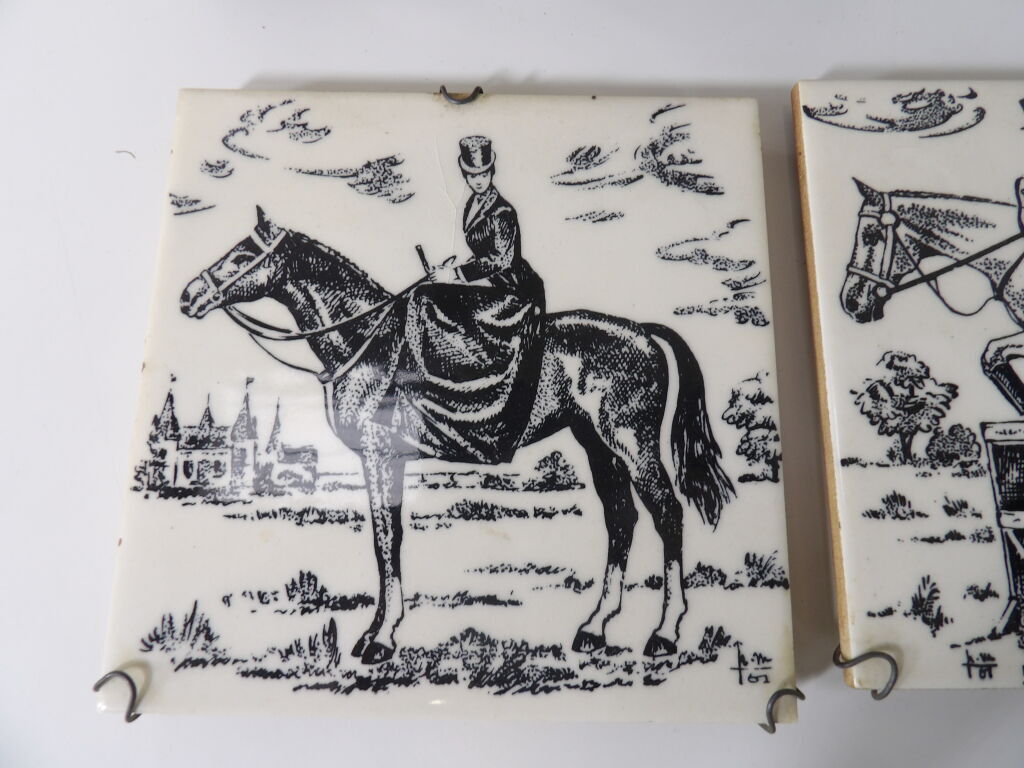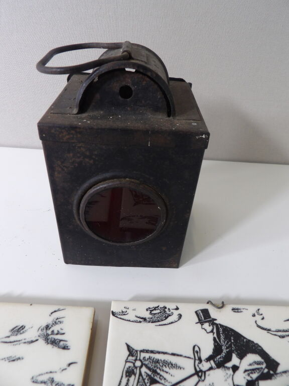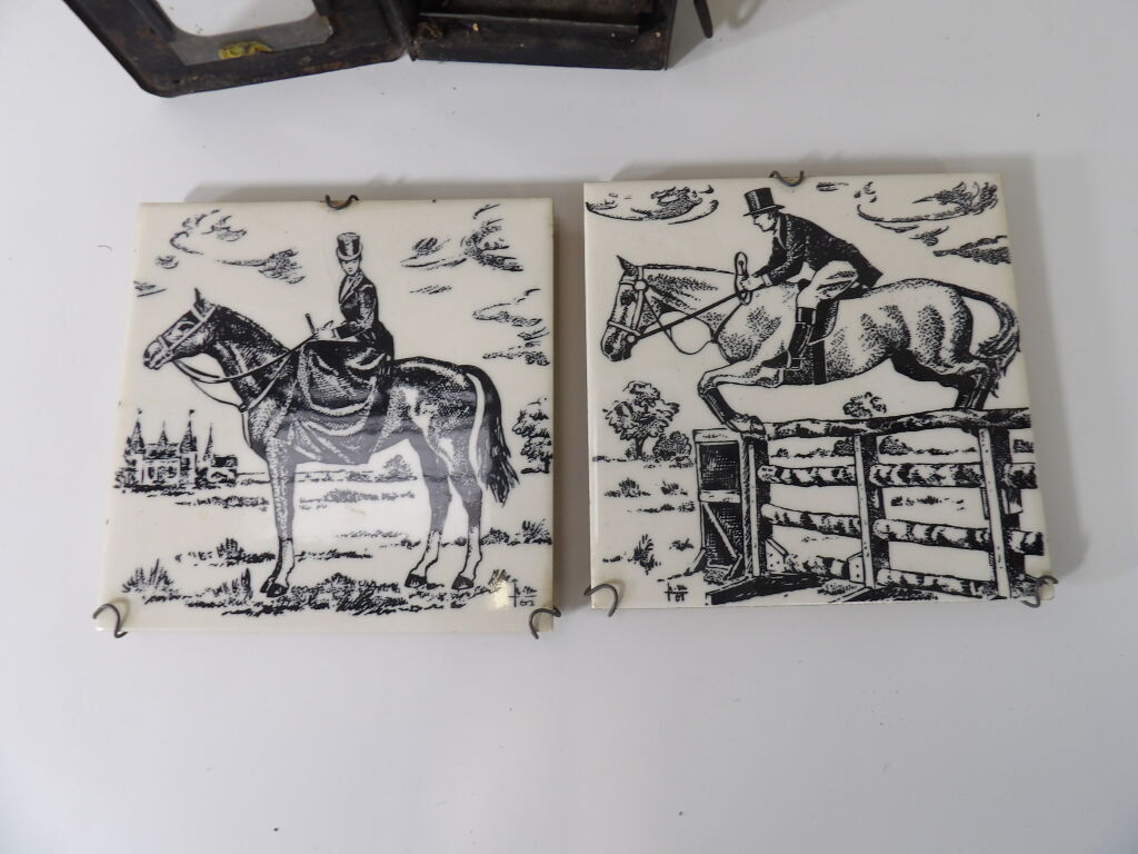 Equidia : 2 carreaux 10 x 10 de Gien à thématique Hippique.Lanterne de calèche en fer
