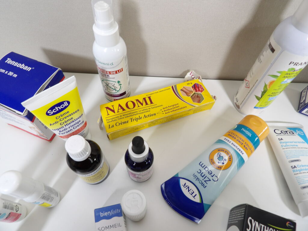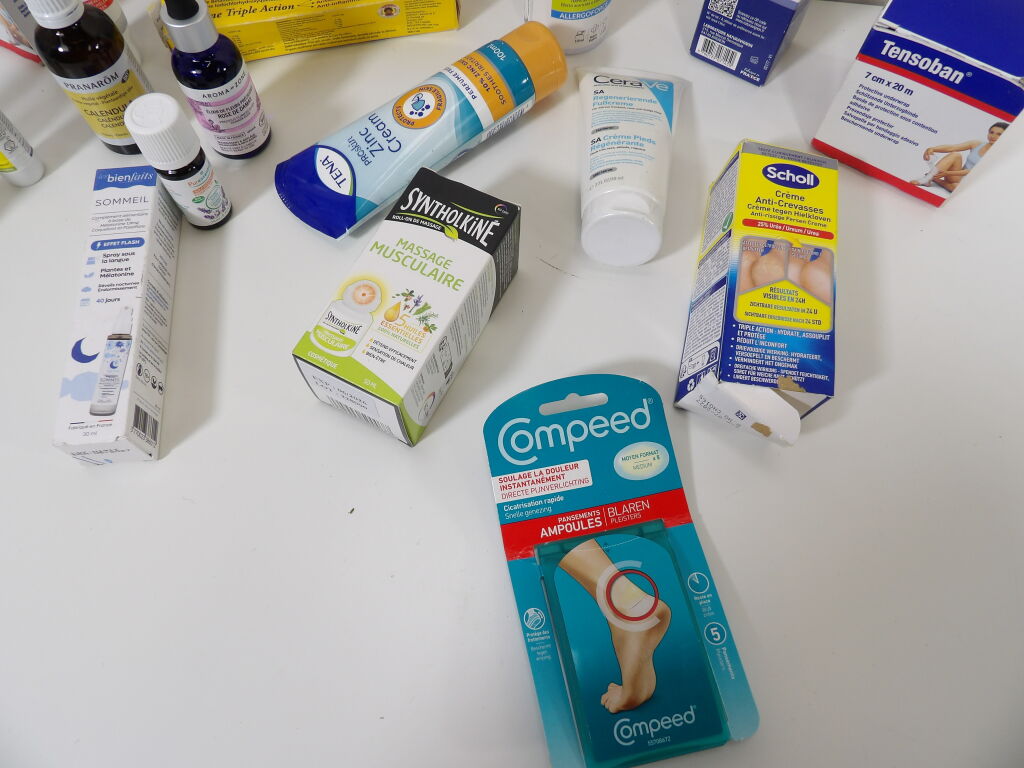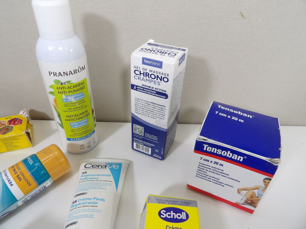 Lot Cosmétiques "BIEN ETRE" / Médical : x20 articles neufs et occasion : crèmes crampes, huiles essentielles, gel de massage, anti piqures, bande de protection ....