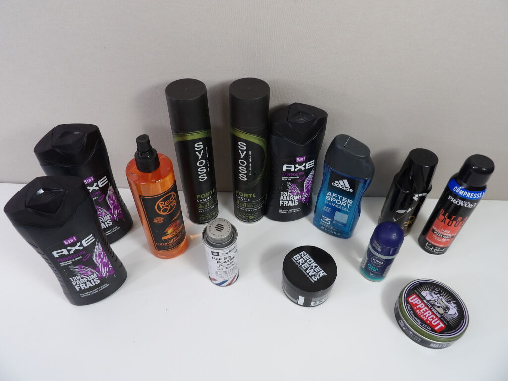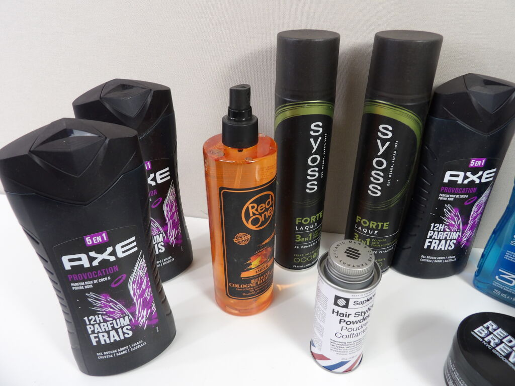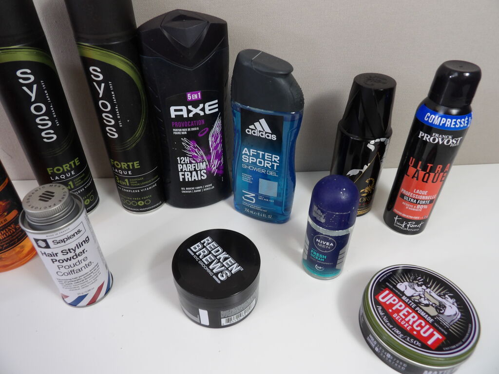 Lot Cosmétiques pour HOMME : x12 articles neufs et occasion : Gel douche AXE, crème, déodorant, NIVEA, laque....