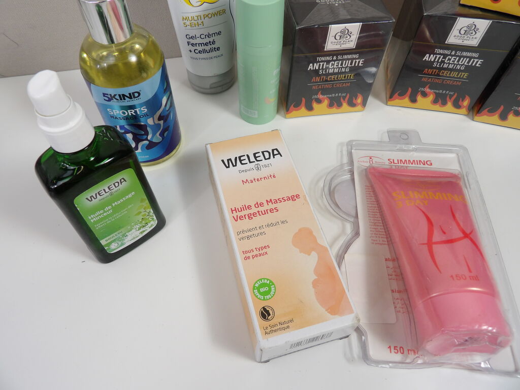 Lot Cosmétiques pour MASSAGE & MINCEUR : x10 articles neufs et occasion : Weleda, anti cellulite, NIVEA Gel crème fermeté, Huile de massage ....