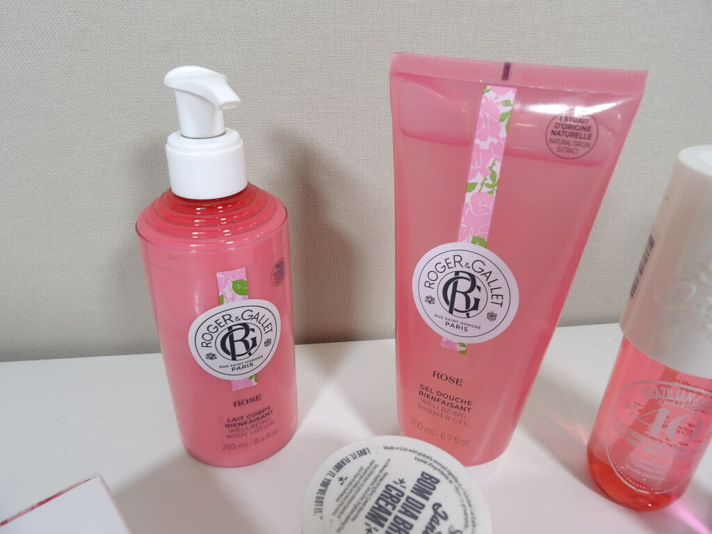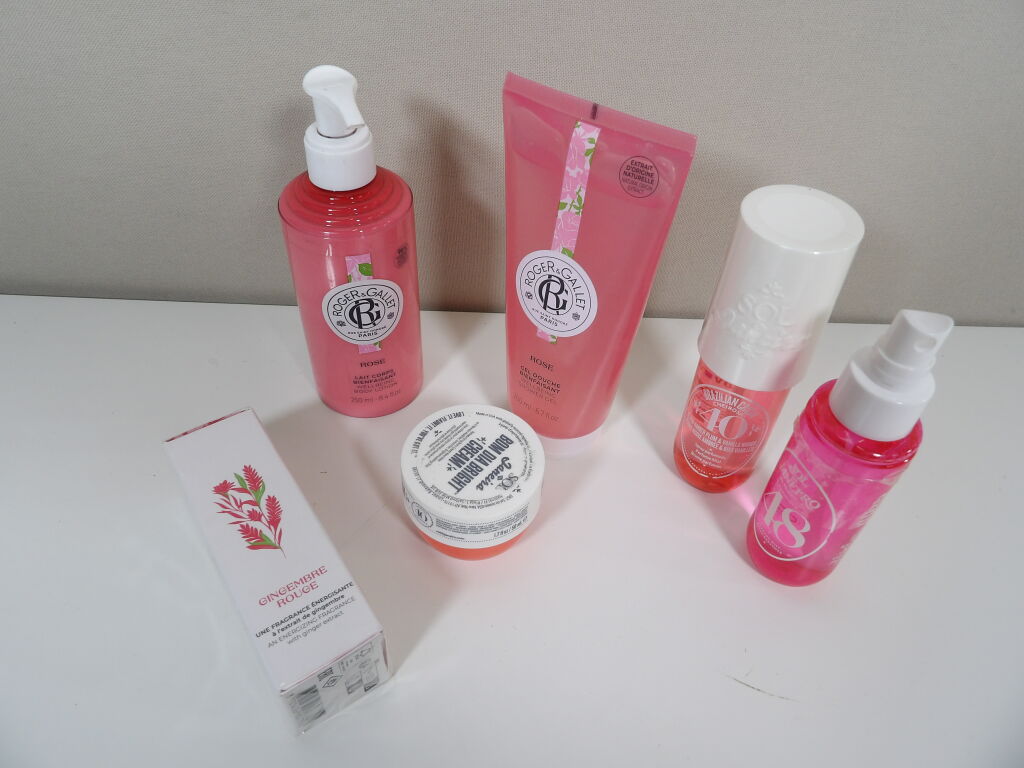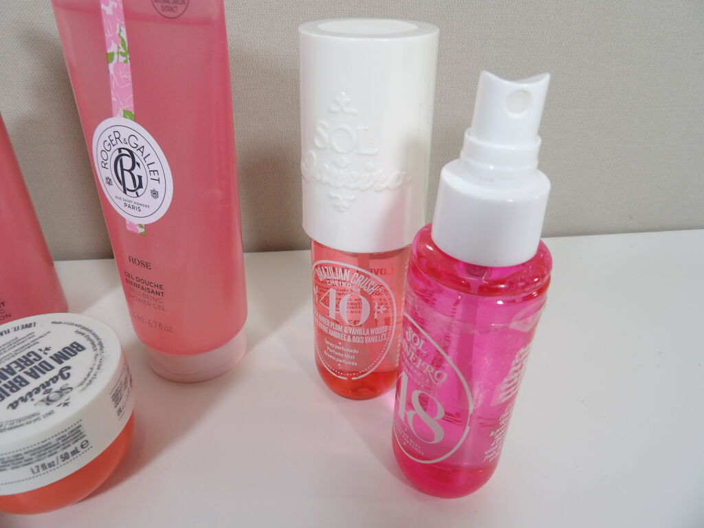 Lot Cosmétiques "Thème ROSE" : x6 articles neufs et occasion : Sol de JANEIRO et Roger GALLET. Lait corps, gel douche, spray parfumé ....