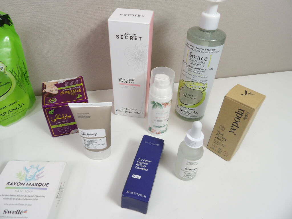 Lot Cosmétiques VISAGE FEMME : x11 articles neufs et occasion : Pin Up secret, Srums, Micellaire enchantée, Savon masque, YEPODA...