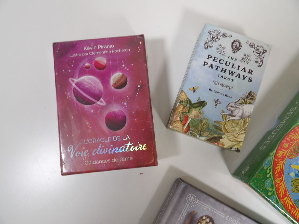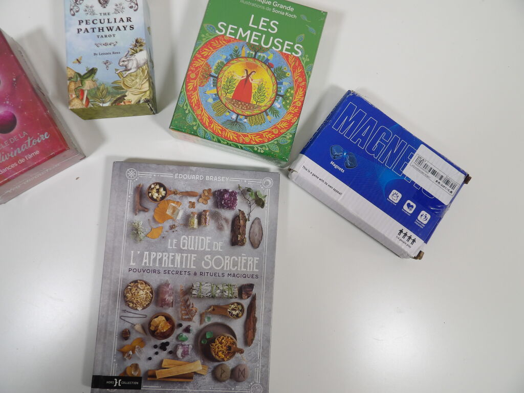 Lot de 3 Jeux de société et un livre- Neufs et occasion - L'ORACLE DE LA VOIE DIVINATOIRE - MAGNETIC - LES SEMEUSES - TAROT - LE GUIDE DE L'APPRENTIE SORCIERE Complétude non assurée - vendu en l'état **