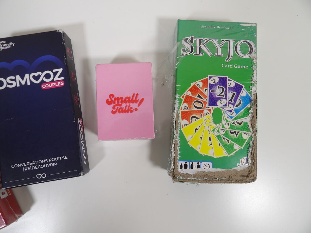 Lot de 4 Jeux de société - Neufs et occasion - OSMOSE - SKYJO - SMALL TALK! - DIMOI CURIOSITE BIEN PLACEE Complétude non assurée - vendu en l'état **