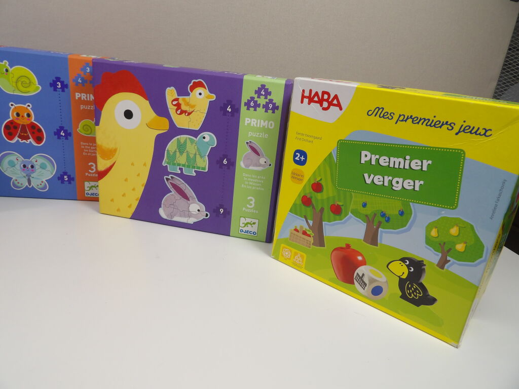 Lot de 5 Jeux Neufs et occasion pour ENFANTS, puzzles JDECO, domino puzzles, premier verger,