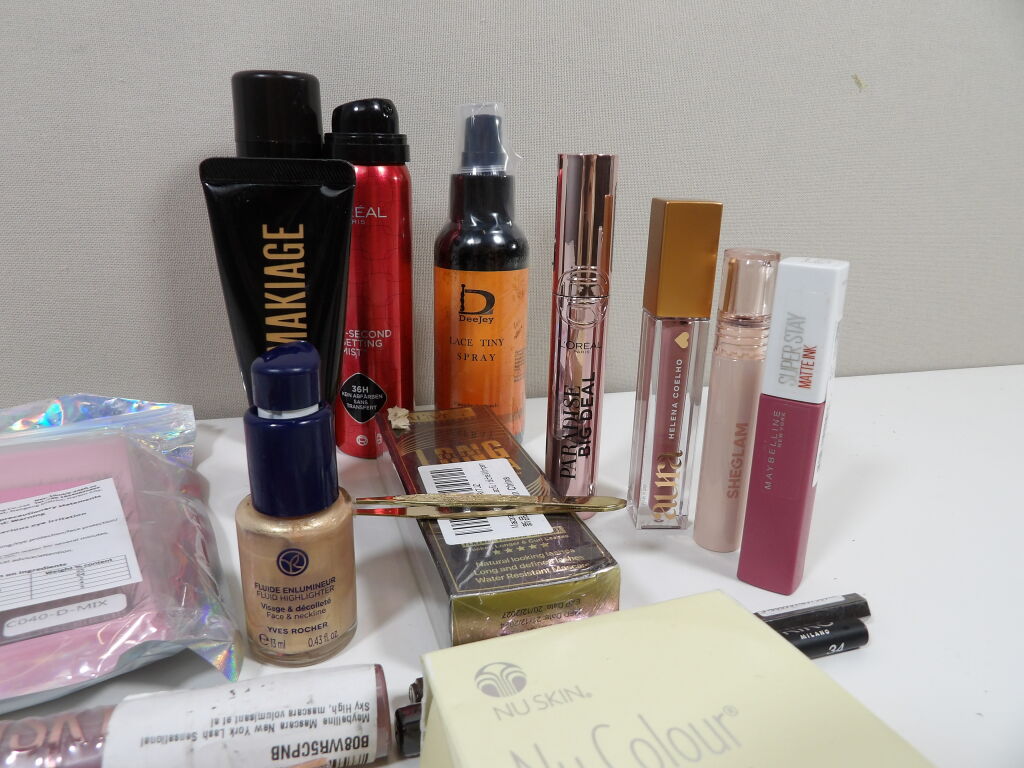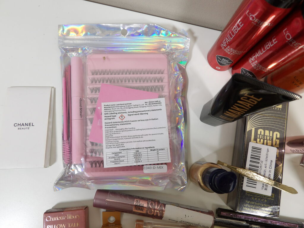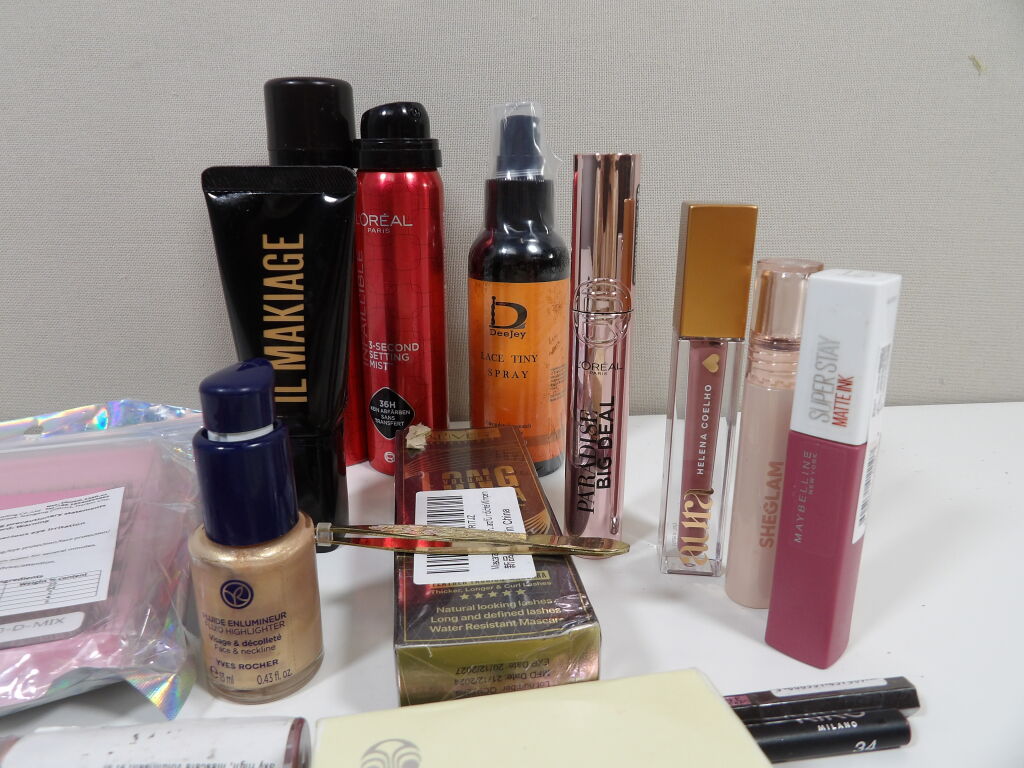 Lot maquillage de 19 articles (neuf et occasion) : loreal - charlotte tilbury - gloss - mascara- fond de teint....)
