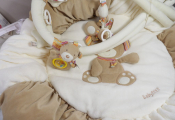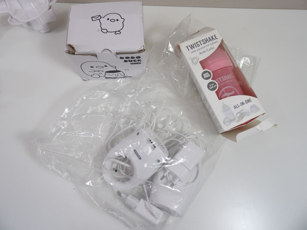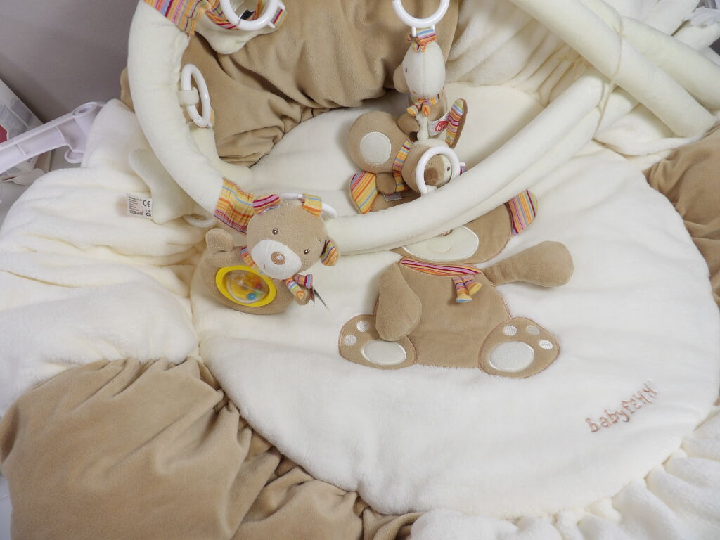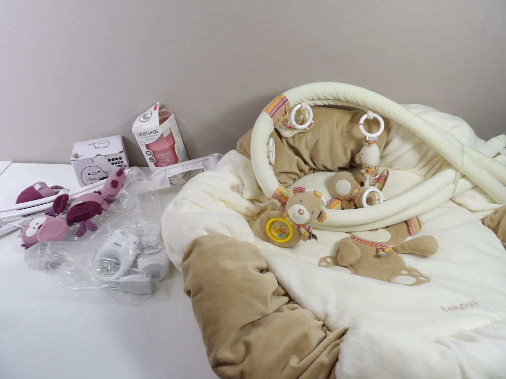 Lot PUERICULTURE - comprenant x5 articles divers pour bébé d'occasion et neufs : Baby phone, Mobile, Biberon, un tapis d'éveil, ...