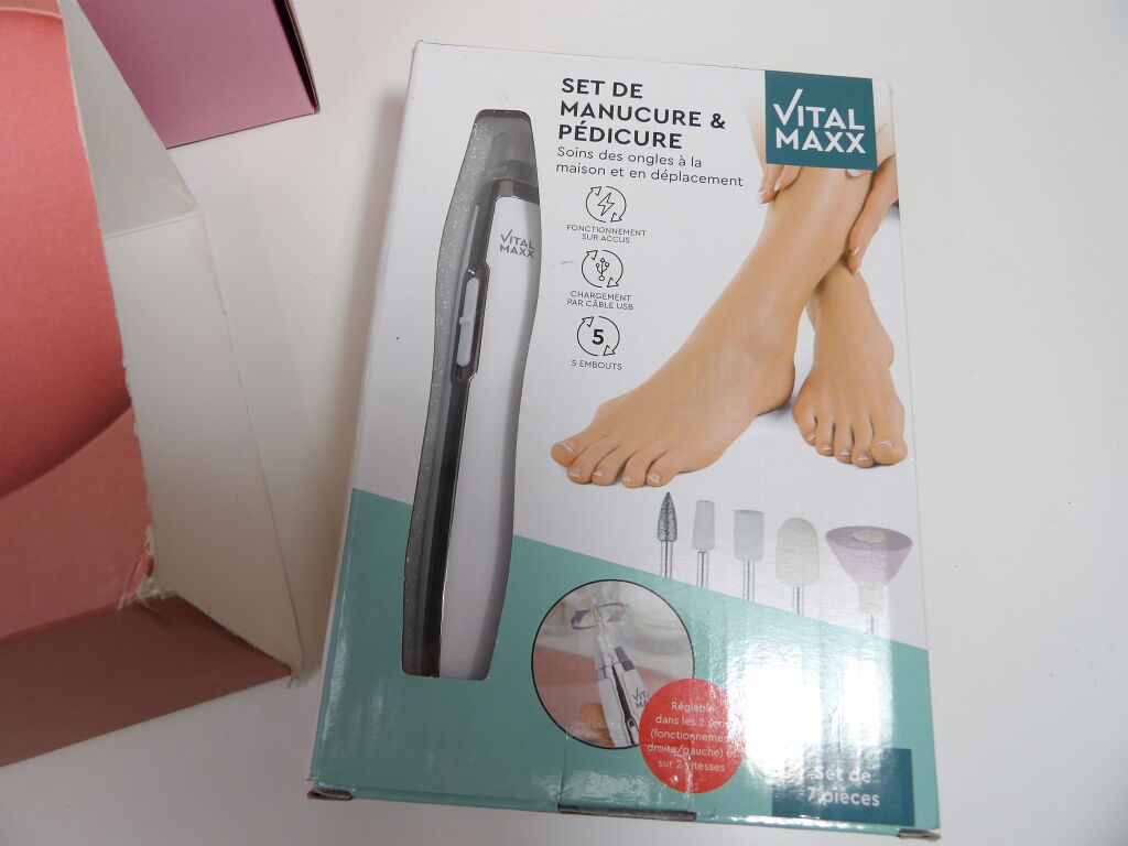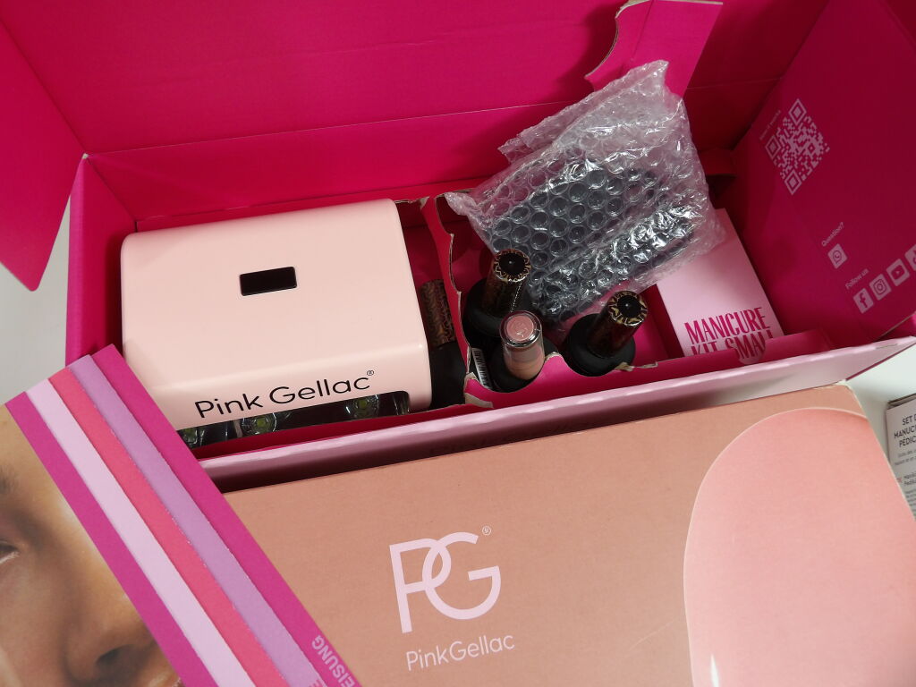 MANUCURE / Pedicure : Coffret PINK GELLAC Semi permanent à la maison - descellé mais état neuf : Gel Polish Startersset M + 251 NUDE PINK (Vernis, lumière,...). On y inclut un Set soin des ongles VITAL MAXX.