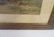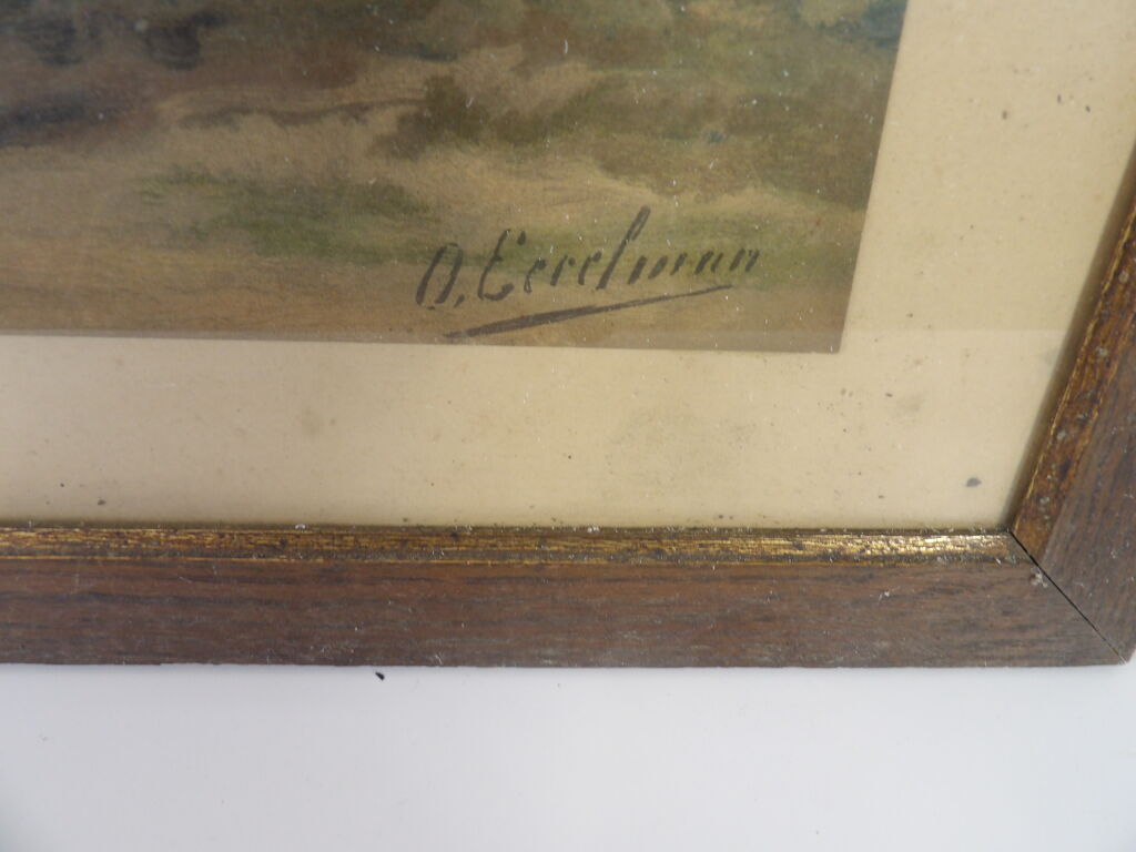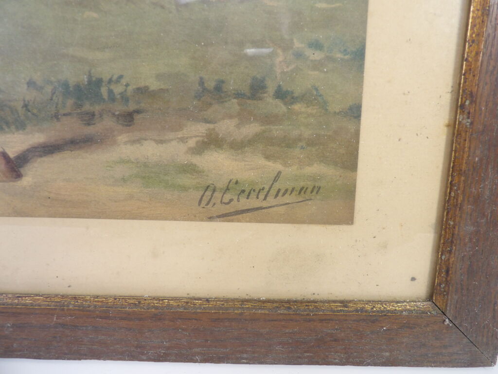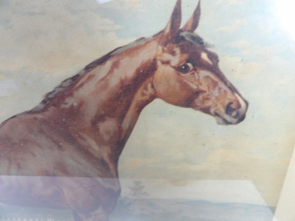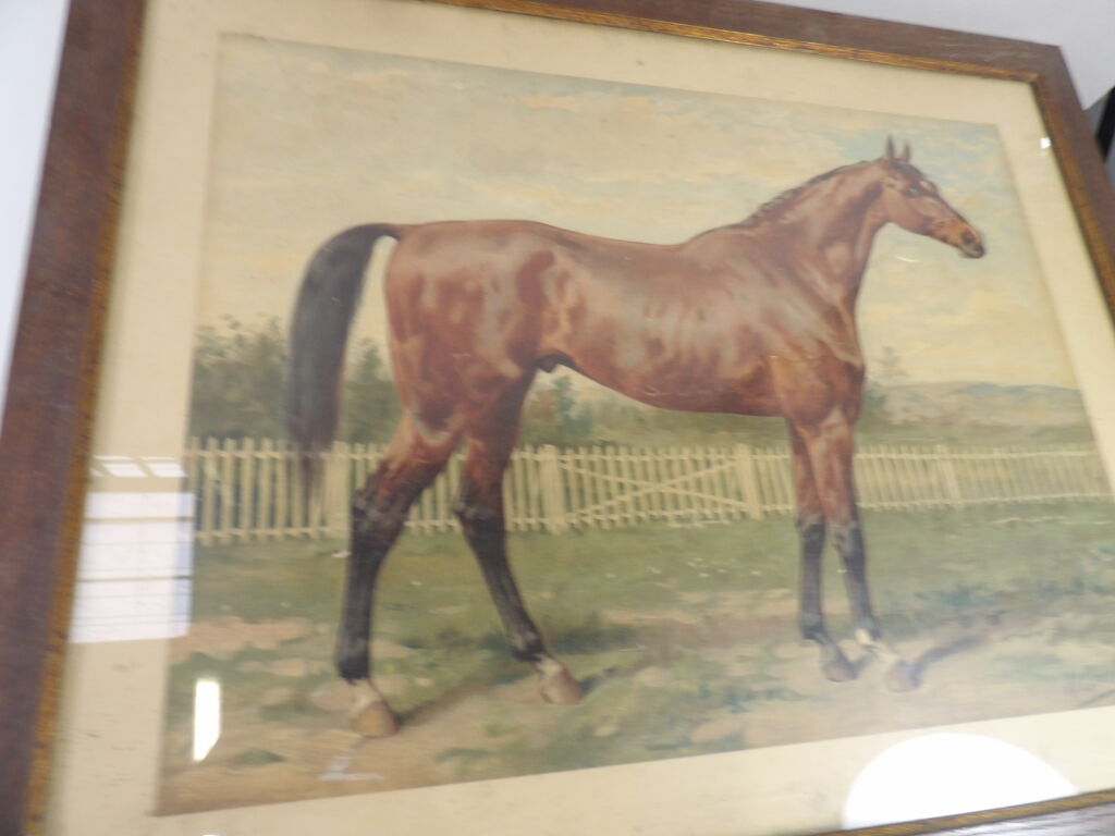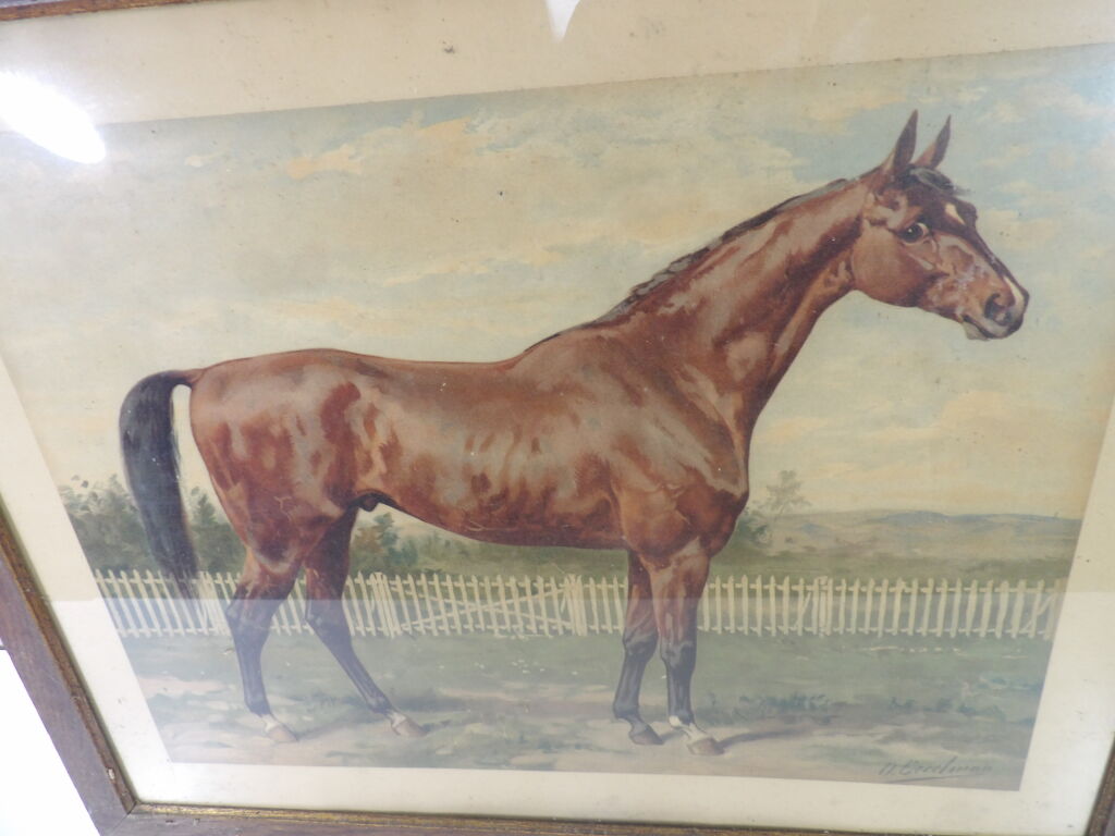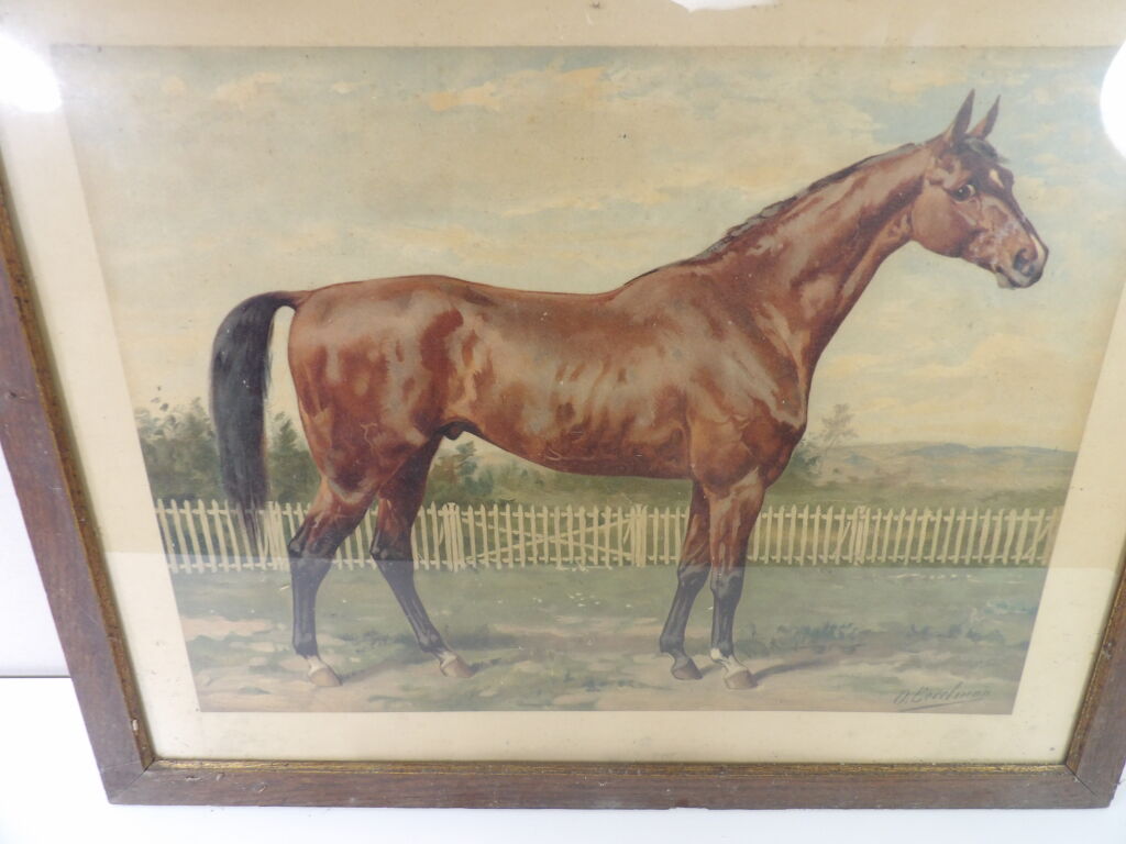 Otto Eerelman (1839 - 1926) : chromolithographie (par J. L. Goffart) représentant un cheval, environ 45 x 59,5 cm, encadrée sous verre .