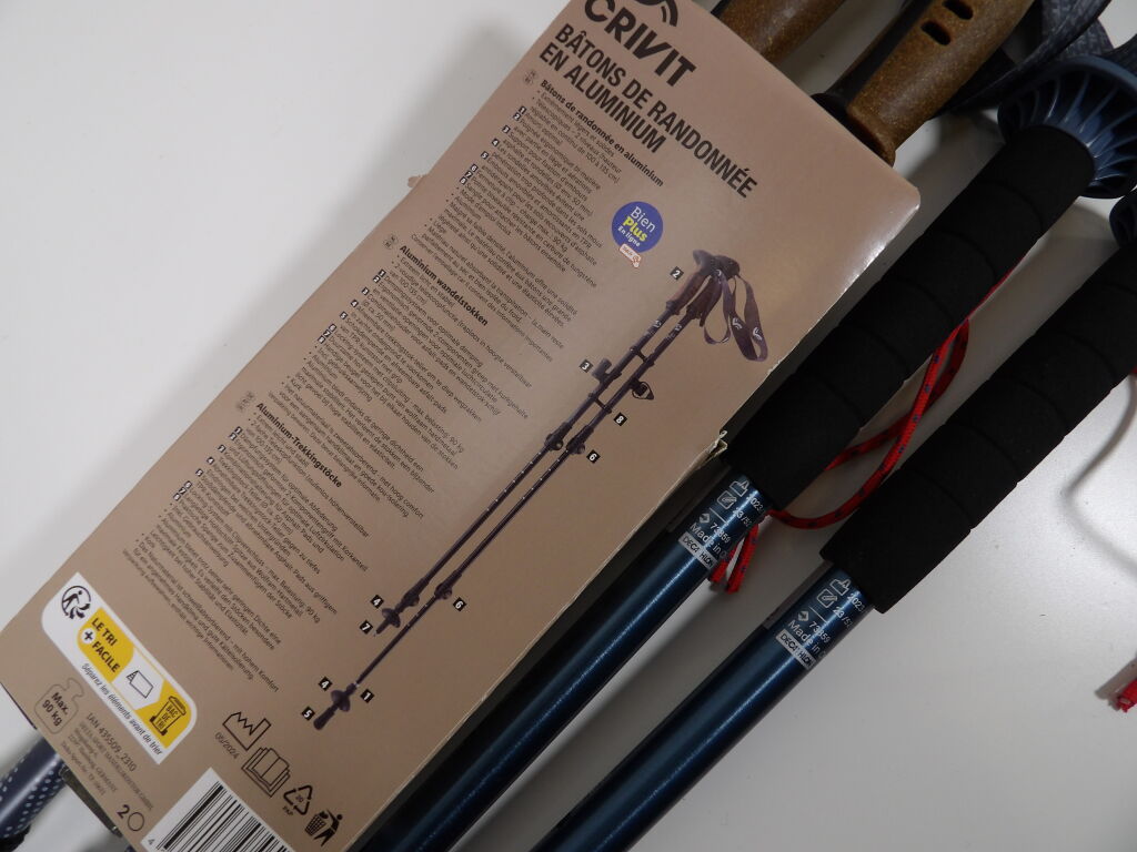 Baton de randonnée EN ALUMINIUM extrêmement légers et solides - telescopique 2 niveaux (hauteur réglable en continu de 100 à 135 cm) CRIVIT NEUF