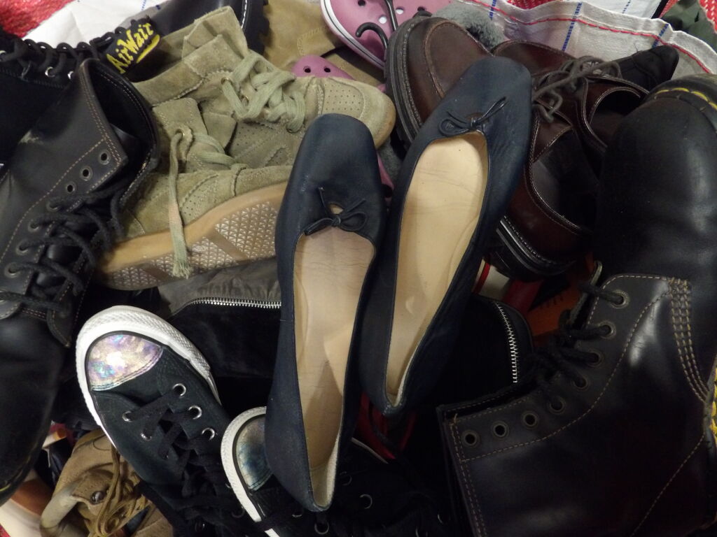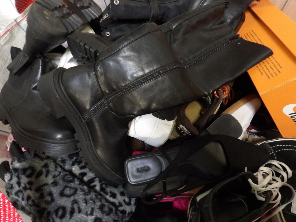 1/2 Palette de 65 paires de chaussures d'occasion, certaines neuves :Homme, Femme et enfant ( divers gammes et marques dont Converse - Jonak ATTENTION ce lot est d'occasion tous états et contient divers gammes dont de l'entrée gamme aussi. il n'est pas composé uniquement des marques citées.