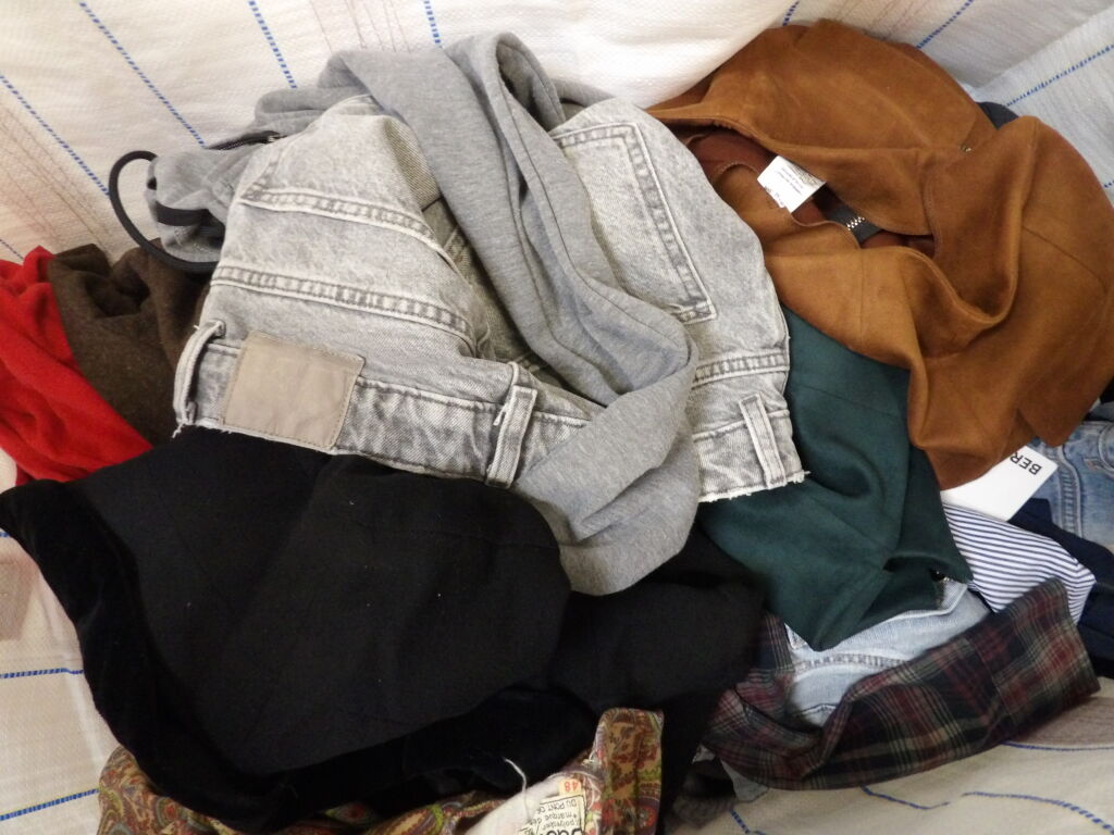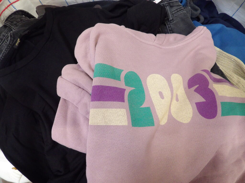 1/2 palette de 85 pièces de vêtements d'occasion et certains neufs : Femme, Enfant, Homme ( divers gammes et marques dont Maje - Ba&sh ...) - ATTENTION ce lot est d'occasion tous états et contient divers gammes donc de l'entrée type KIABI aussi. il n'est pas composé uniquement des marques citées.