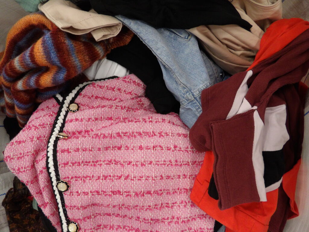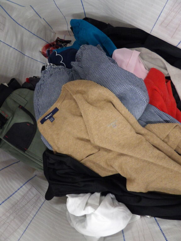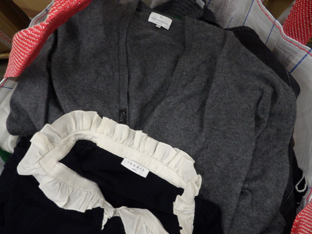 1/2 palette de 85 pièces de vêtements d'occasion et certains neufs : Femme, Enfant, Homme ( divers gammes et marques dont Sandro - Eric Bompard...) - ATTENTION ce lot est d'occasion tous états et contient divers gammes donc de l'entrée type KIABI aussi. il n'est pas composé uniquement des marques citées.
