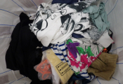 1/2 palette de 85 pièces de vêtements d'occasion et certains neufs : Femme, Enfant, Homme ( divers gammes et marques dont Soeur - Rosaé...) - ATTENTION ce lot est d'occasion tous états et contient divers gammes donc de l'entrée type KIABI aussi. il n'est pas composé uniquement des marques citées.
