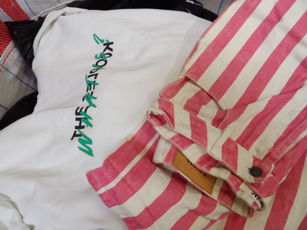 1/2 palette de 85 pièces de vêtements d'occasion et certains neufs : Femme, Enfant, Homme ( divers gammes et marques dont The Kooples - Balzac...) - ATTENTION ce lot est d'occasion tous états et contient divers gammes donc de l'entrée type KIABI aussi. il n'est pas composé uniquement des marques citées.