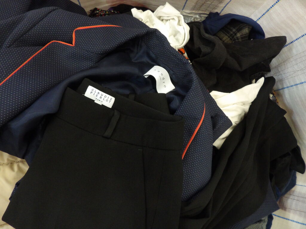 1/2 palette de 85 pièces de vêtements d'occasion et certains neufs : Femme, Enfant, Homme ( divers gammes et marques dont Sandro, Clauudie Pierlot ...) - ATTENTION ce lot est d'occasion tous états et contient divers gammes donc de l'entrée type KIABI aussi. il n'est pas composé uniquement des marques citées.