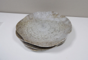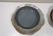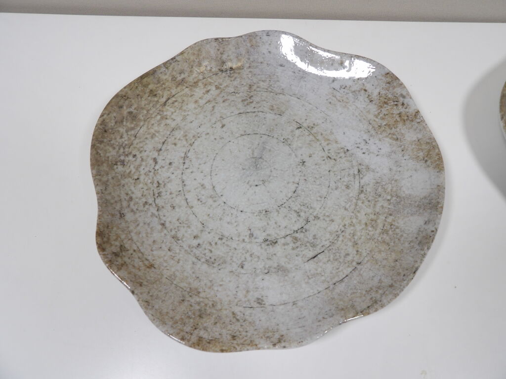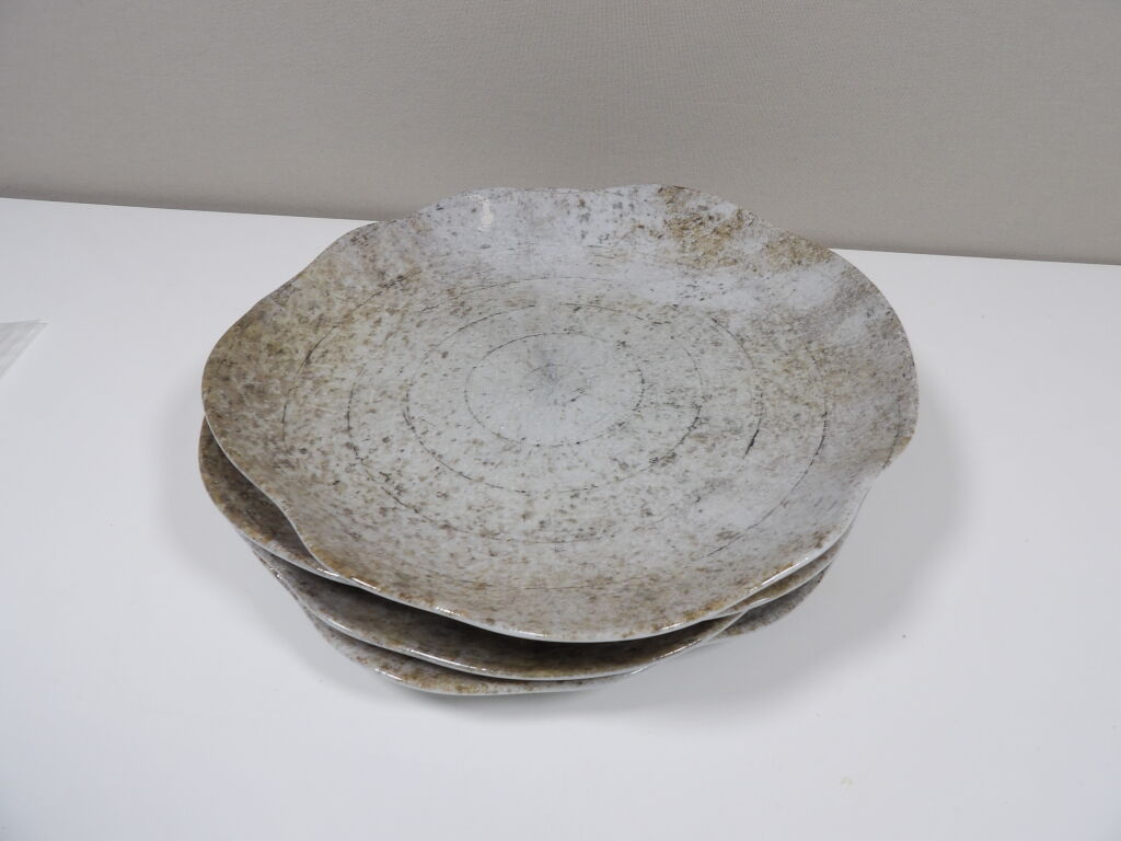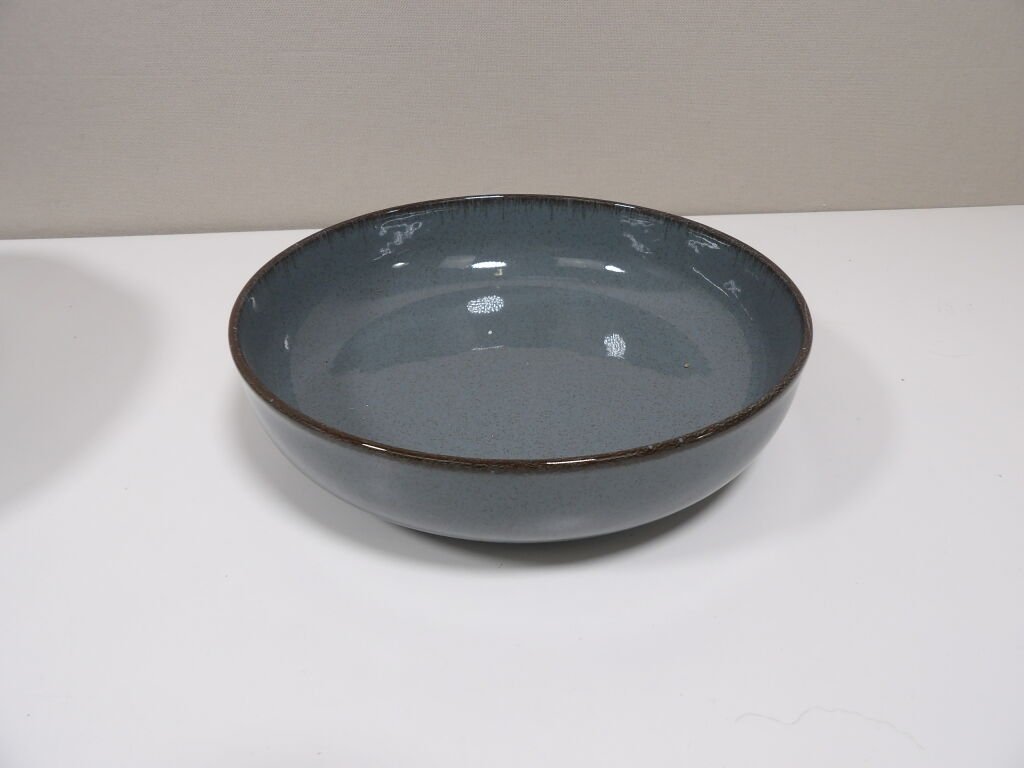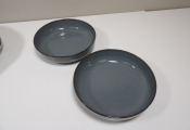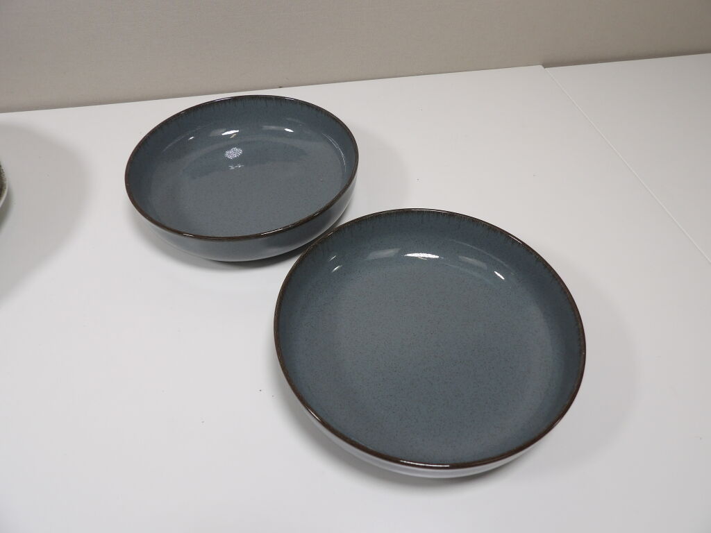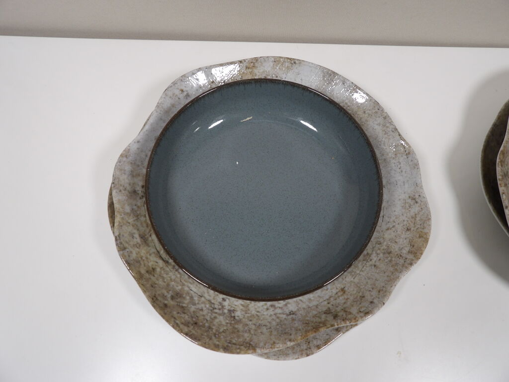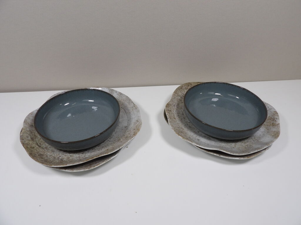 ART DE LA TABLE - Lot de 6 articles Neufs: 2 x bols en céramique coloris gris bleuté (diamètre 19.5 cm) + 4x Assiette plate Gironia forme organique de la marque VEGA colrois taupe (diamètre 28cm)