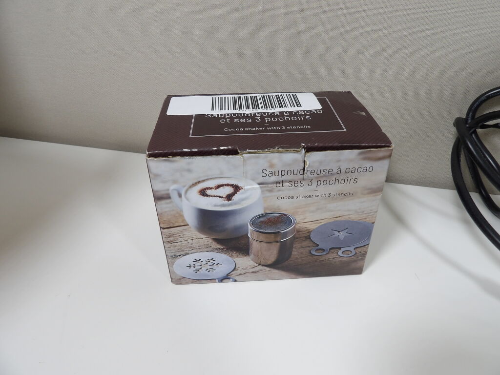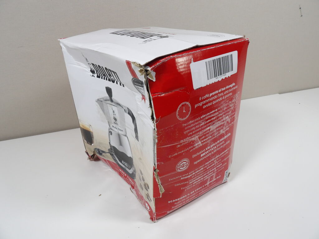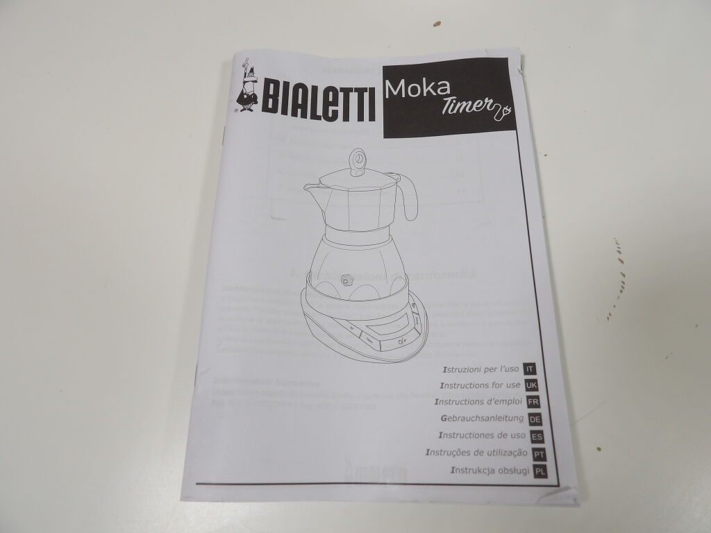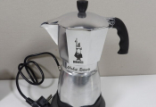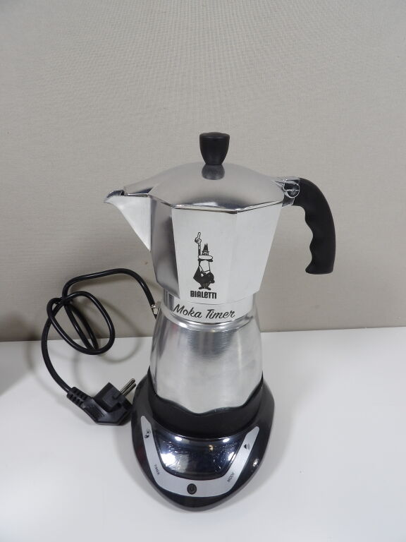 BIALETTI - Cafetière italienne électrique - Moka Timer - 6 tasses / 30 cl - Neuf (emballage très abîmé) - On y joint une soupoudreuse à cacao et ses trois pochoirs neuf également