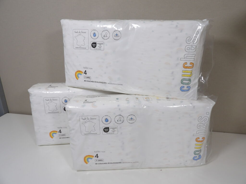 COUCHES - x3 paquets de 48 couches en Taille 4 (7-14 kgs), soit 144 couches écologiques neuves.