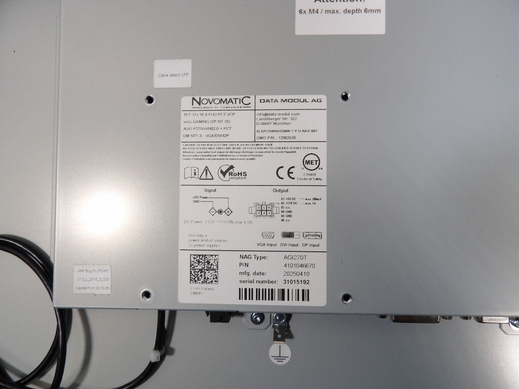 Ecran moniteur Salle de jeux Gaming de marque NOVOMATIC - AUO P270HVN02.0 ? Dim 64 x 39 cm - Neuf -