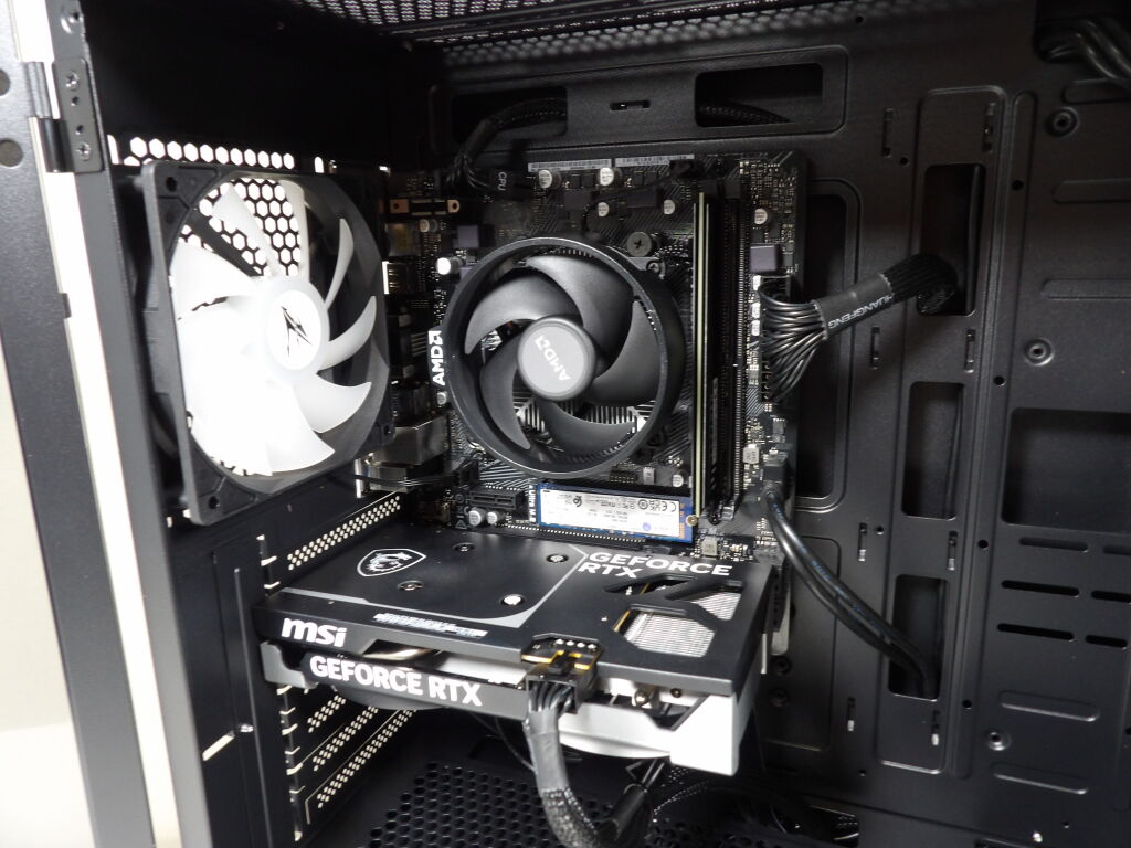 Informatique - Gaming - Tour PC Zalman I3 Neo black équipée d'une carte graphique: msi geforce rtx 5060 8g ventus 2x oc + MSI Geforce RTX + ALTYK B500NM + carte mère ASRock A520M-HVS ... Semble neuf - non testé - vendu en l'état - Attention un des coins est abîmé voir photos