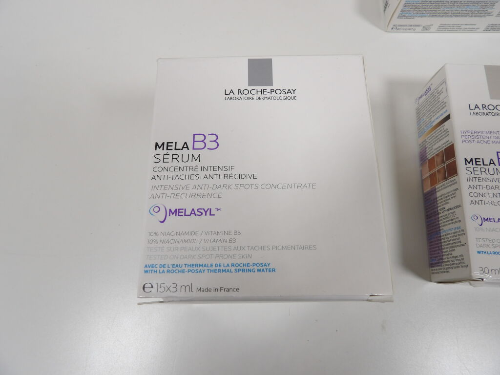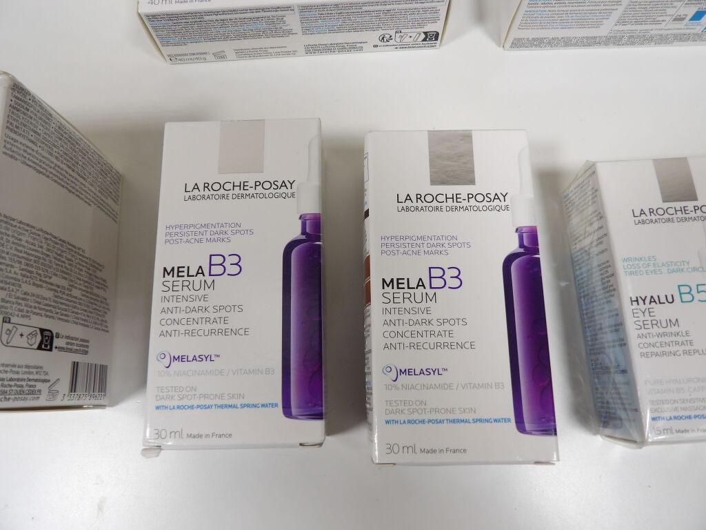 LA ROCHE POSAY - Lot de 12 articles cosmétiques NEUFS: - 1x Mela B3 sérum concentré actif (15x3ml) +2x Mela B3 sérum concentré actif 30ml + 3x Hyalu B5 sérum yeux 15ml + 6x Cicaplast baume ultra réparateur apaisant 40ml