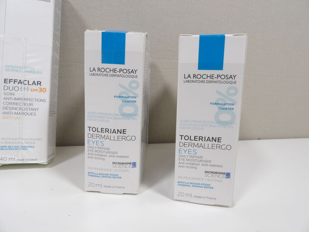 LA ROCHE POSAY - Lot de 12 articles cosmétiques NEUFS: - 6x Toleriane soin hydratant apaisant et réparateur yeux 20ml + 3x Effaclar duo soin anti-imperfections correcteur anti Uv 40ml + 3x Cicaplast baume b5 baume ultra réparateur 40ml