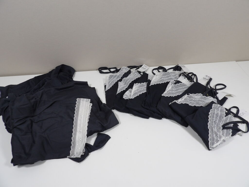 LINGERIE - Homewear - Lot de 10 articles de lingerie femme coloris gris foncé - VALEGE - Neuf avec étiquette - Toutes tailles - Idéal magasin de destockage - Nuisettes, kimonos avec dentelles