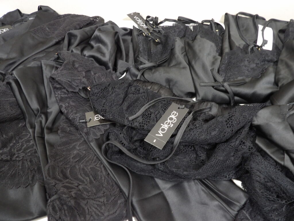 LINGERIE - Homewear - Lot de 12 articles de lingerie femme coloris Noir - VALEGE nuit - Neuf avec étiquette - Toutes tailles - Idéal magasin de destockage - Nuisettes, pantalons, kimonos en satin et dentelles