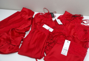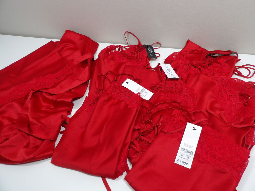 LINGERIE - Homewear - Lot de 7 articles de lingerie femme coloris rouge - VALEGE - Neuf avec étiquette - Toutes tailles - Idéal magasin de destockage - Nuisettes, kimono en satin et dentelle