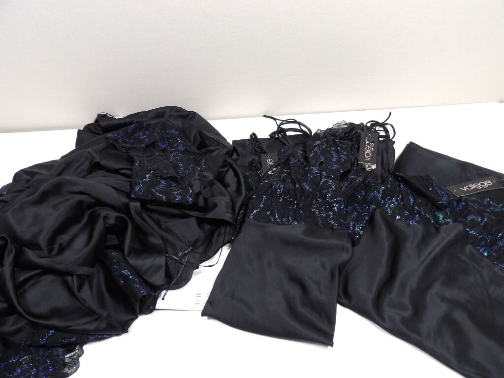 LINGERIE - Homewear - Lot de 8 articles de lingerie femme coloris Noir - VALEGE nuit - Neuf avec étiquette - Toutes tailles - Idéal magasin de destockage - Nuisettes, kimonos en satin et dentelles