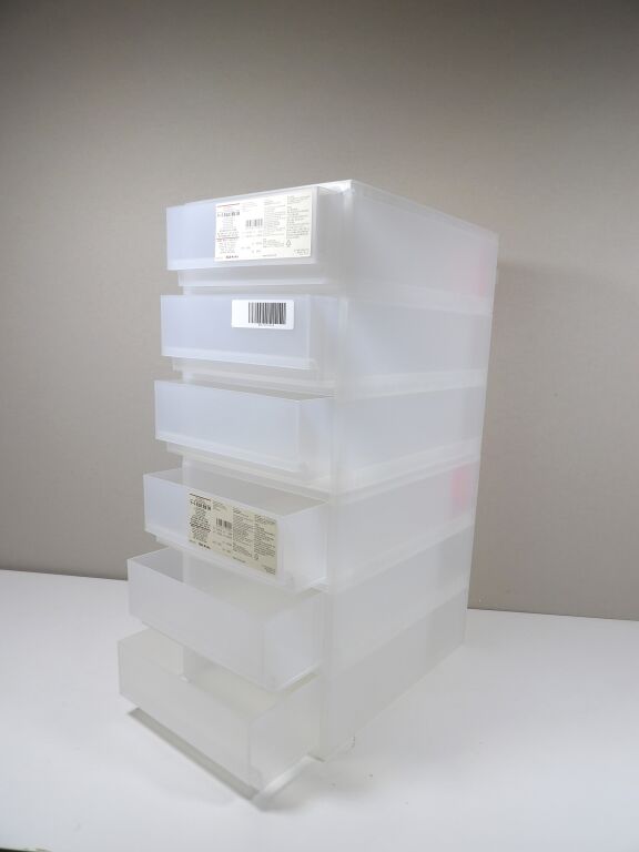 MUJI - Lot de 2 blocs 3 Tiroirs en Polypro - NEUFS - Dimensions: L26 X P37 X H32.5 CM - Attention un des blocs est cassé sur l'arrière ( voir photos)