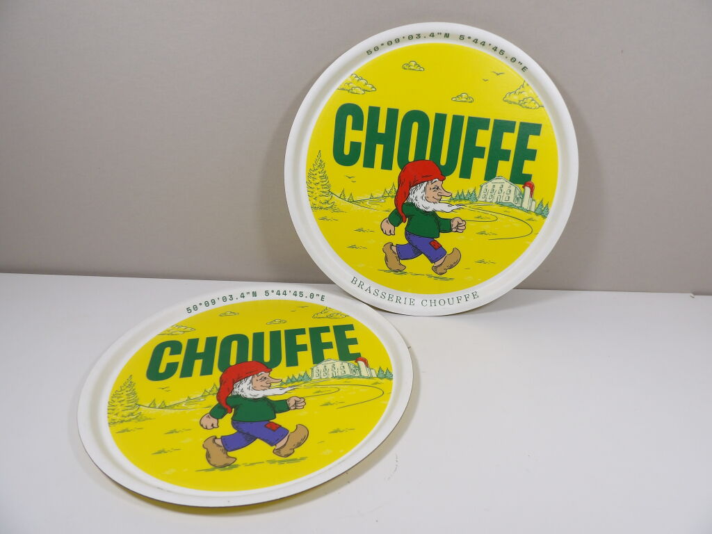Plateau CHOUFFE - lot de 2 articles NEUFS - dimaètre 45 cm - servez des bières à vos invités comme à la brasserie