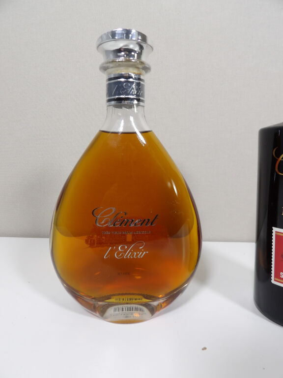 Rhum Clément : très vieux rhum agricole L'Elixir (carafe Eden 70cl) on y joint une crème au rhum vieux (70 cl) de la même maison.