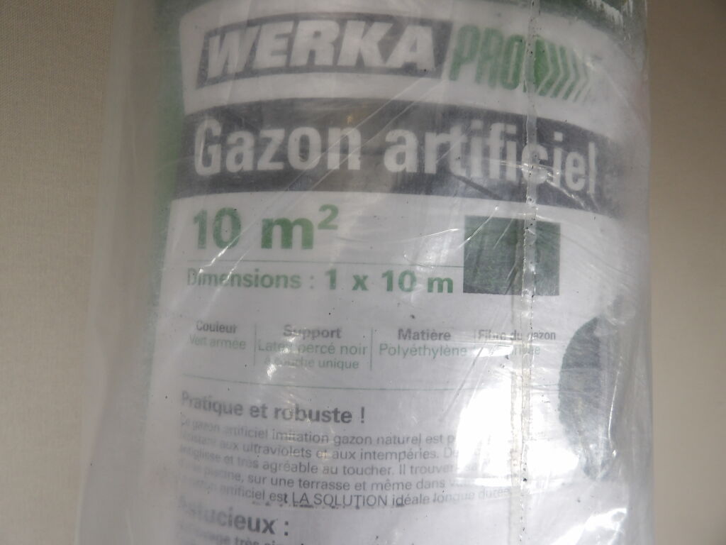 Rouleau de gazon artificiel 1 x 10 m (10 m2) épaisseur 1 cm, neuf.